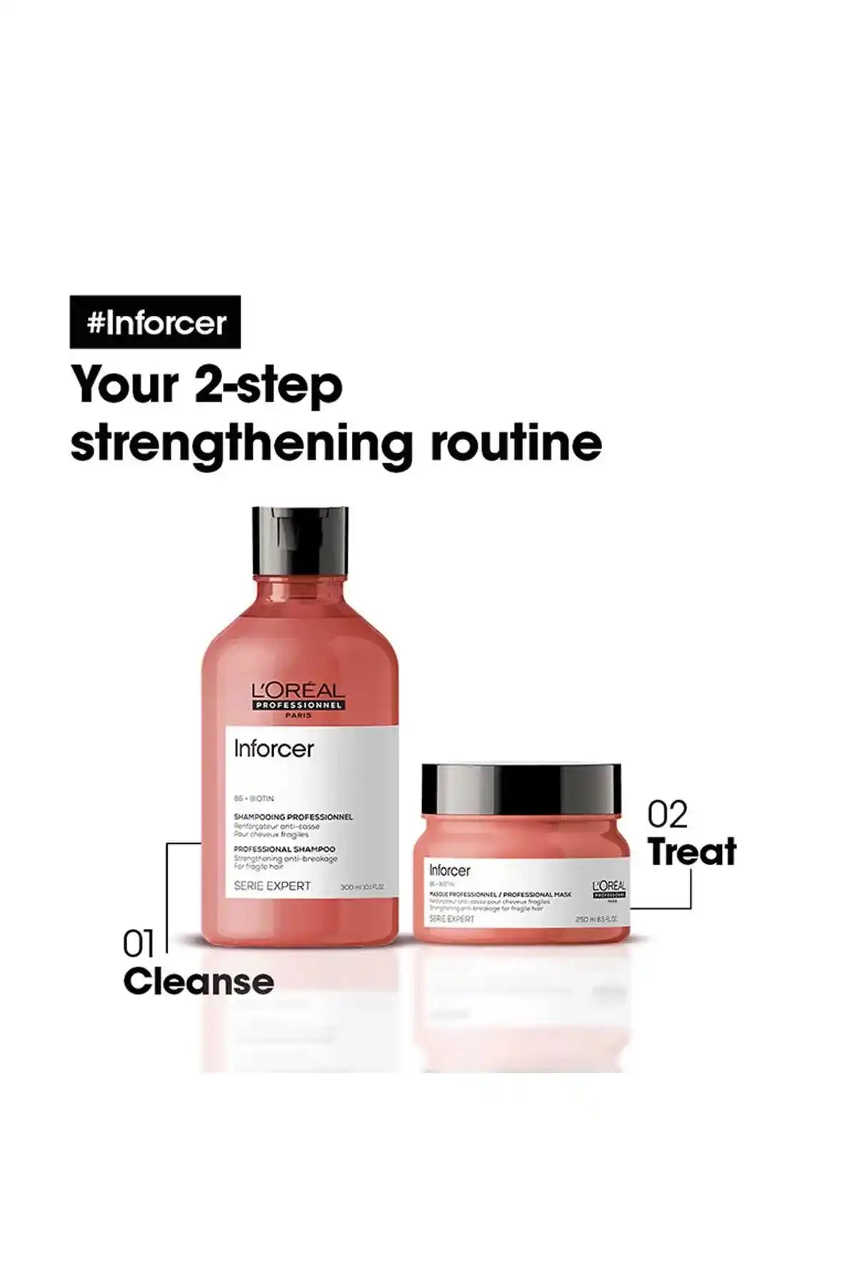 For optimal results, use the Serie Expert Inforcer Shampoo in conjunction with our Inforcer Masque. Unlock the strength and beauty of your hair with our Inforcer range.