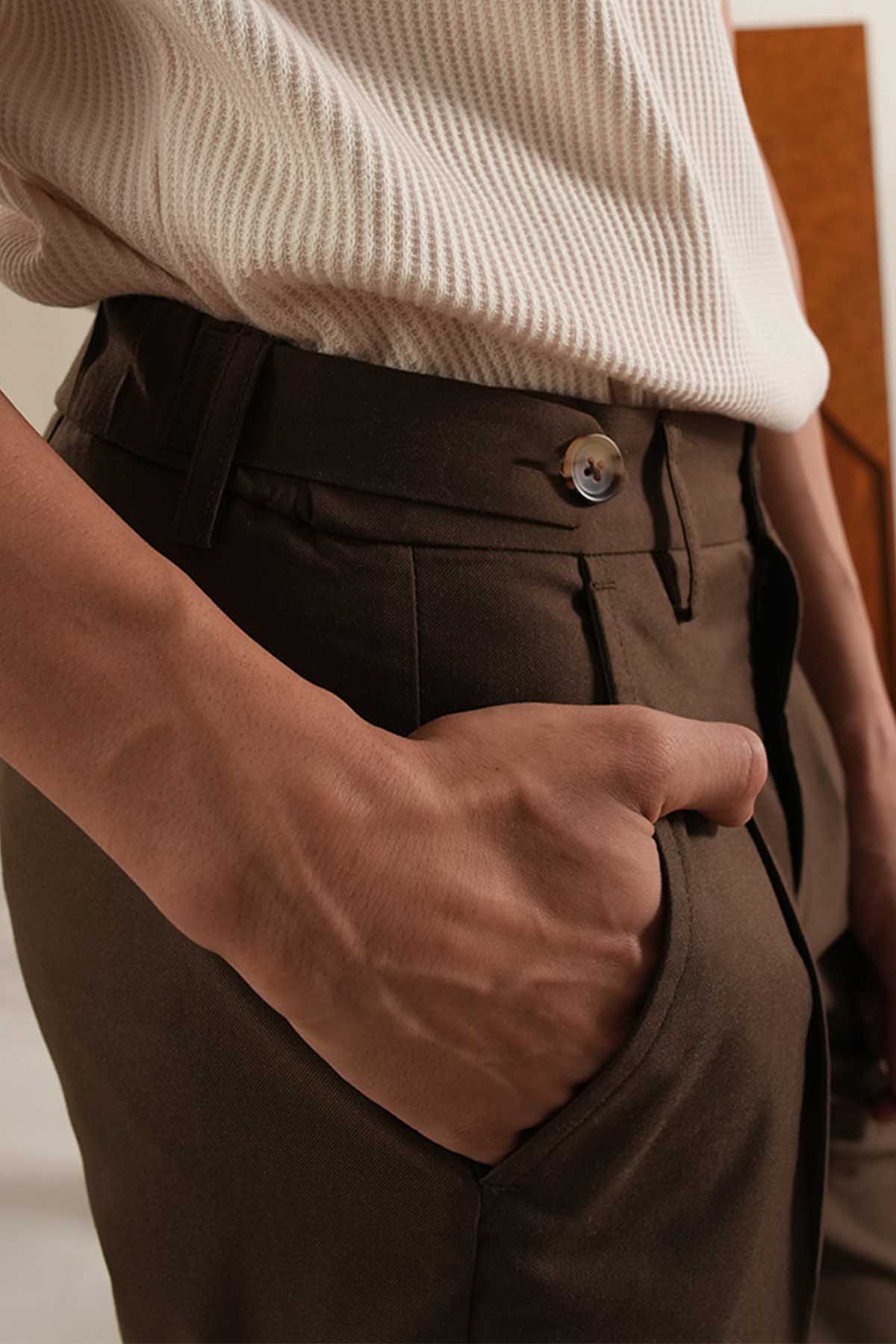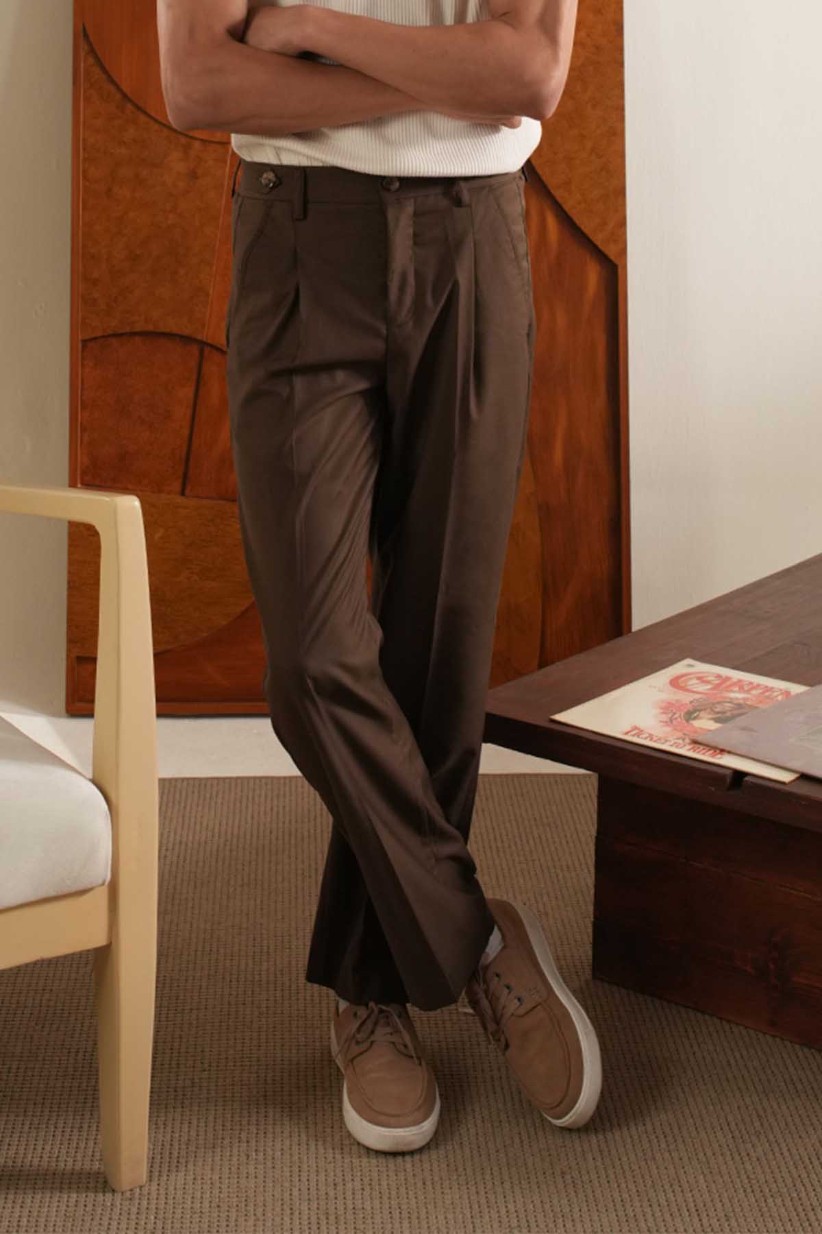LT Brown Adjustable Pleared Pants