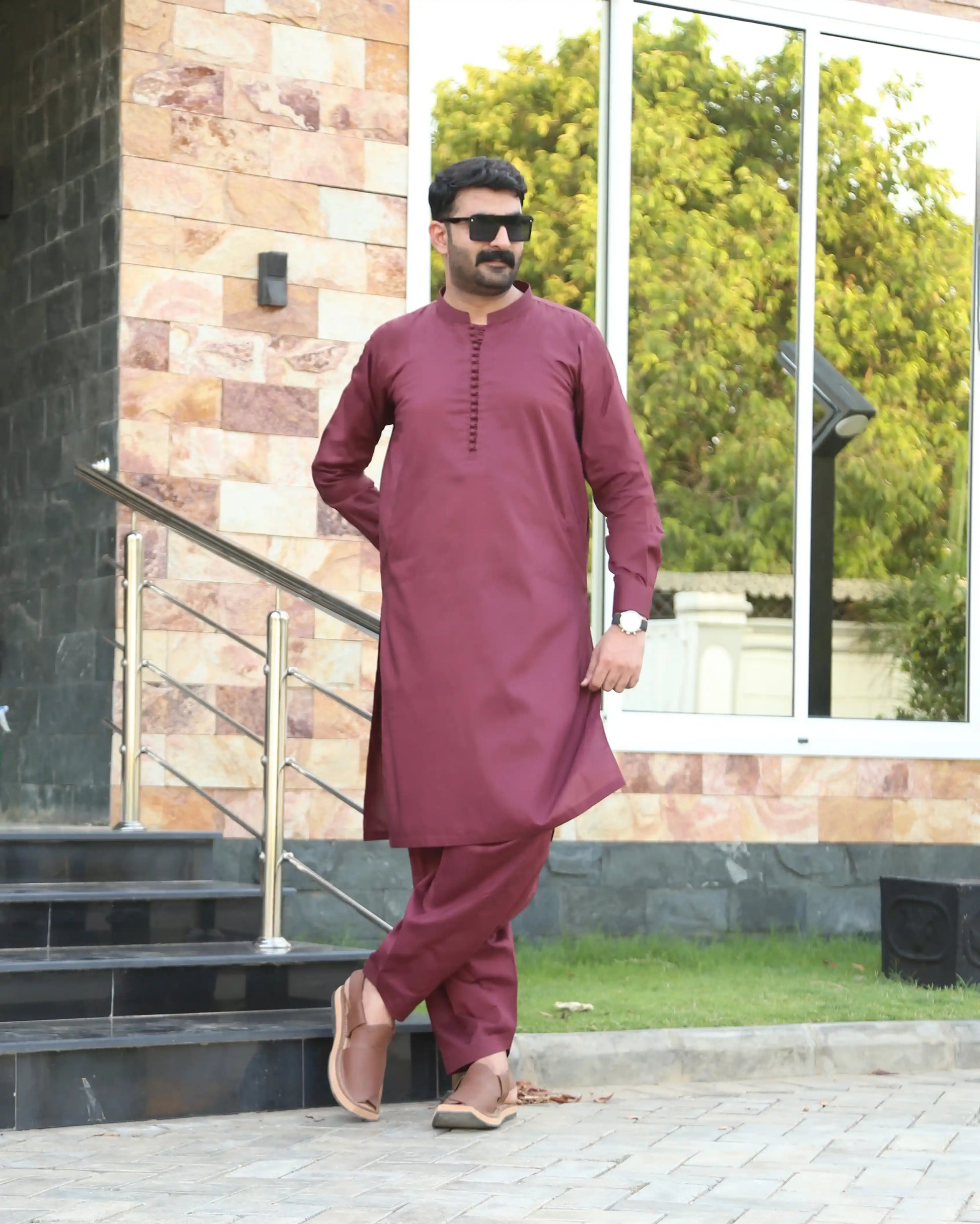 Maroon Luppi Cotton Shalwar Kameez - Stitched
