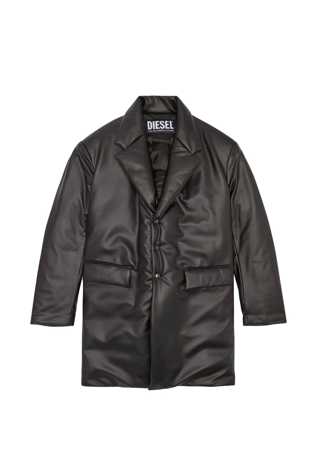 Men's padded coat made from coated stretch jersey in matte black. Featuring notch lapels and a single-breasted front, the silhouette is super puffy and hits around the knee.