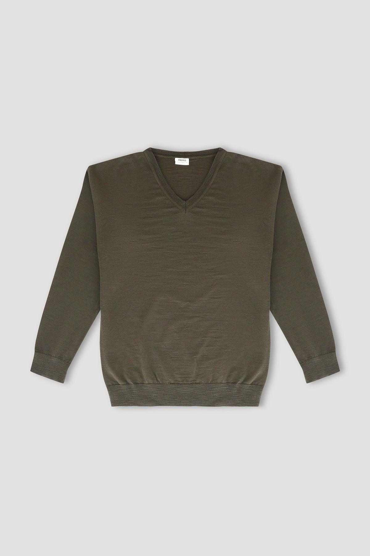 100% Viscose. Cozy Solid Pullover Sweater With V Neckline. Featuring Long Sleeves
