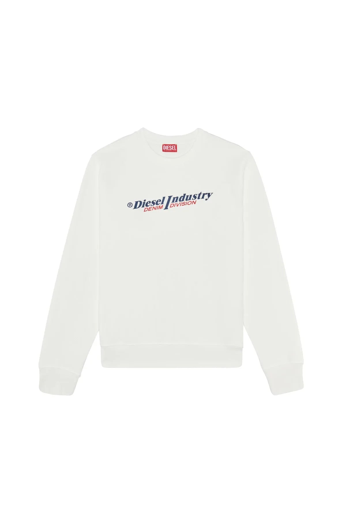 Pigment-dyed sweatshirt. Cut from loopback cotton for a regular fit, it features a treated vintage look and a puff-print Diesel Industry, Denim Division logo on the front.