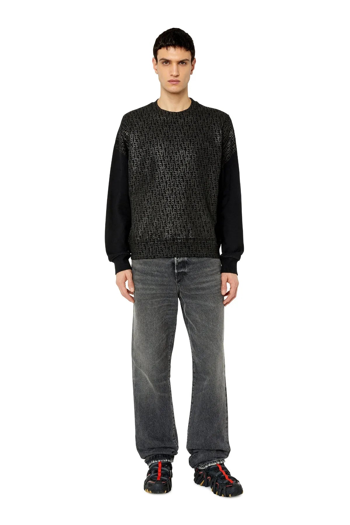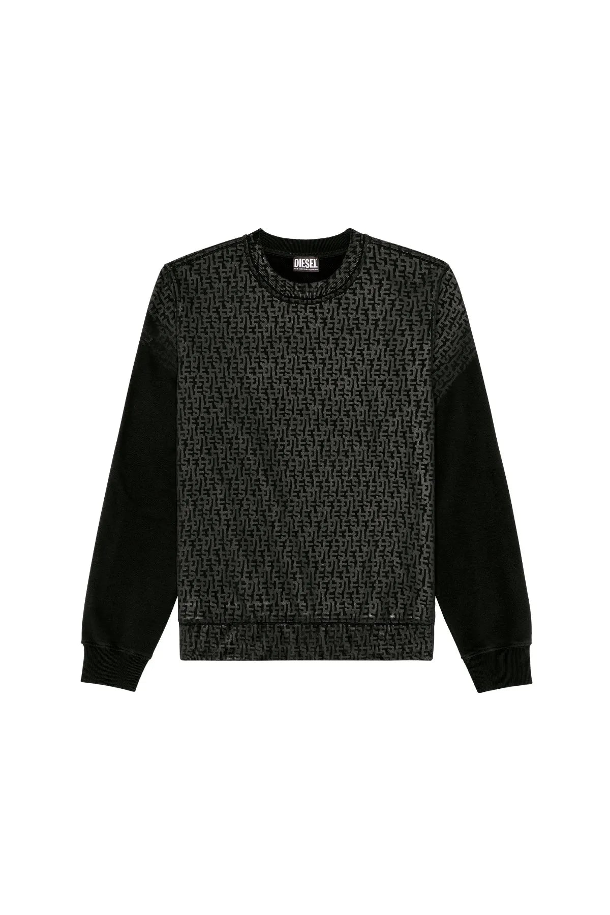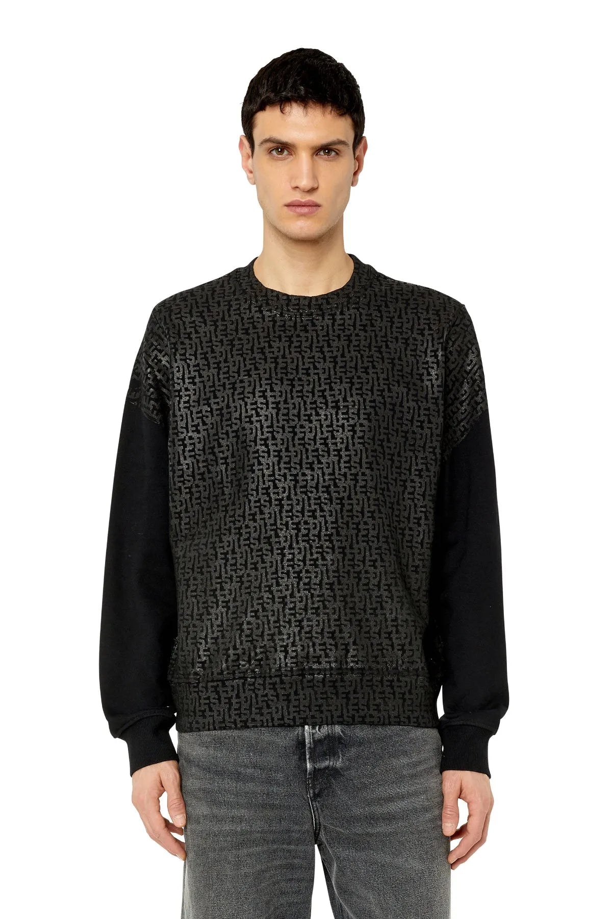 Men's regular-fit sweatshirt built from soft cotton jersey. The whole garment, including the trims, is detailed with a tonal Diesel monogram print in a rubberized finish.