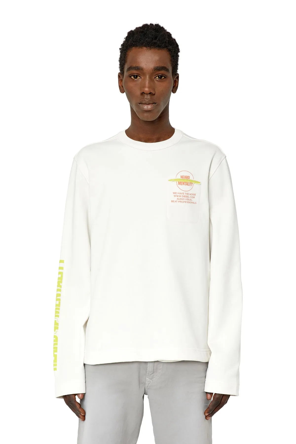 Men's regular-fit cotton jersey sweatshirt with drawstring hem. The chest is cut to create a pocket with contrast lining, printed with cracked 'Heard-Mentality' lettering. Finished with puff prints on the back and right sleeve.