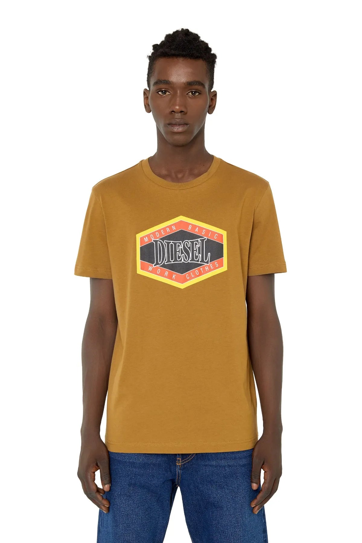 This men's slim-fit tee is built from organic cotton jersey. The front features a 'Diesel Modern Basic Work Clothes' print.
