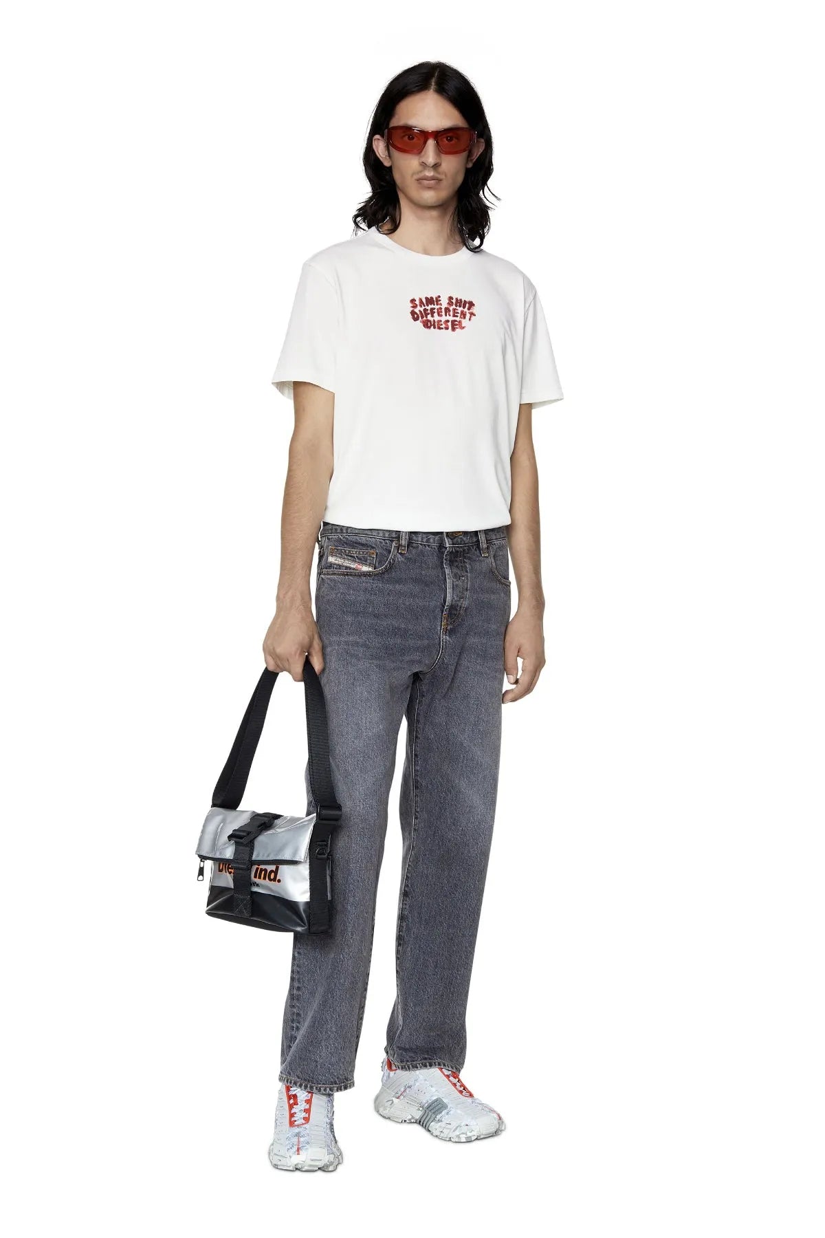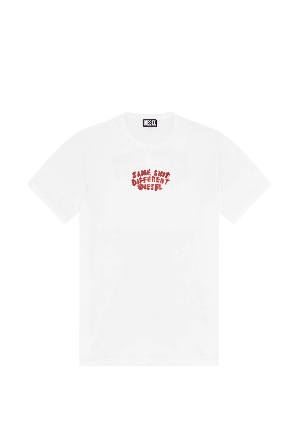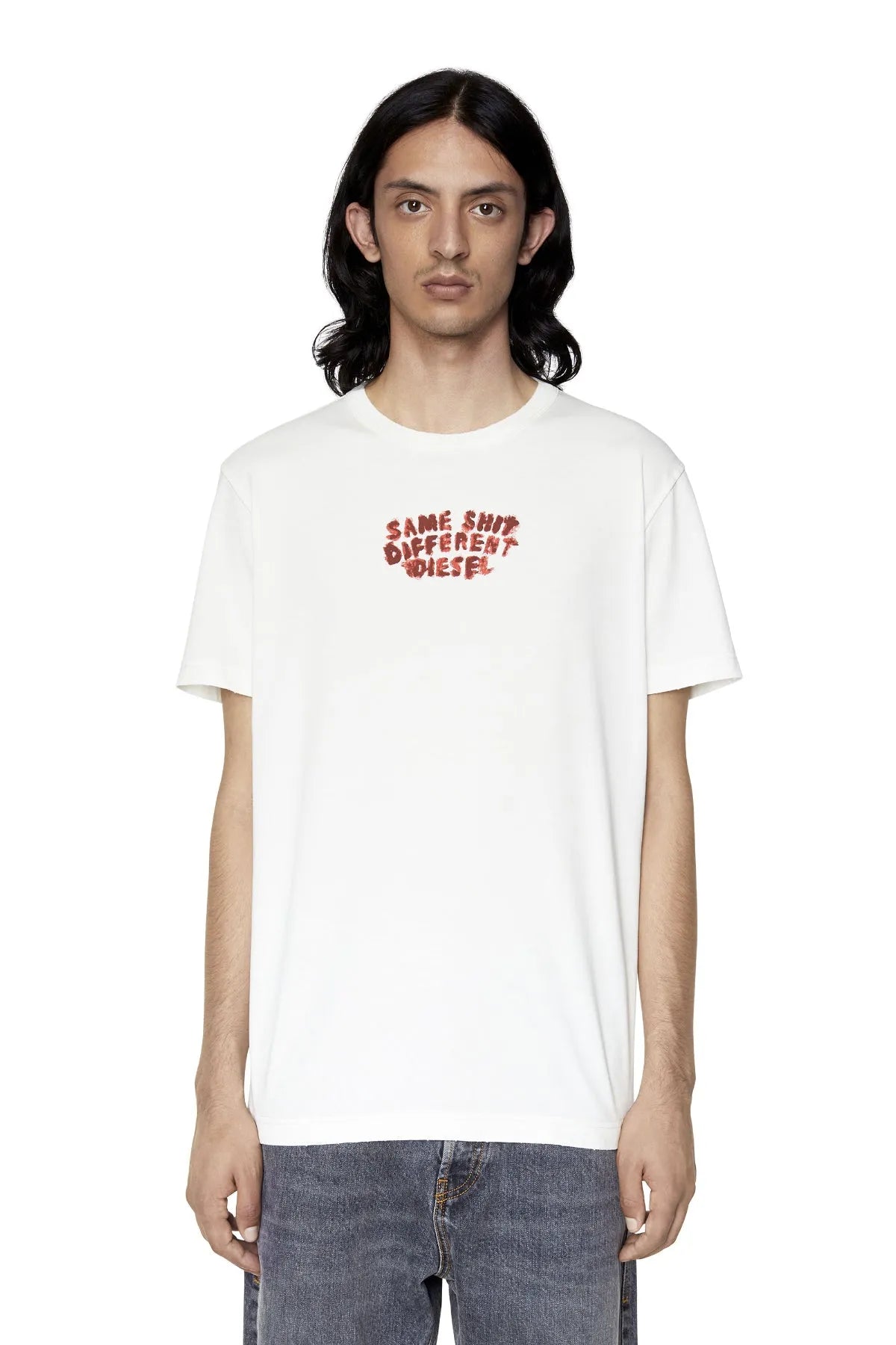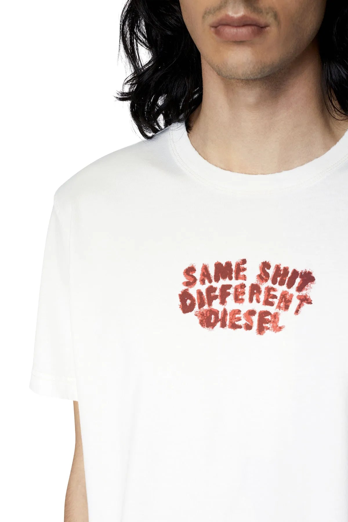Garment-dyed T-shirt made from cotton jersey. This men's slim-fit tee is screen-printed on the front and back with 'Same Shit Different Diesel' lettering whilst damp for a bleeding effect.