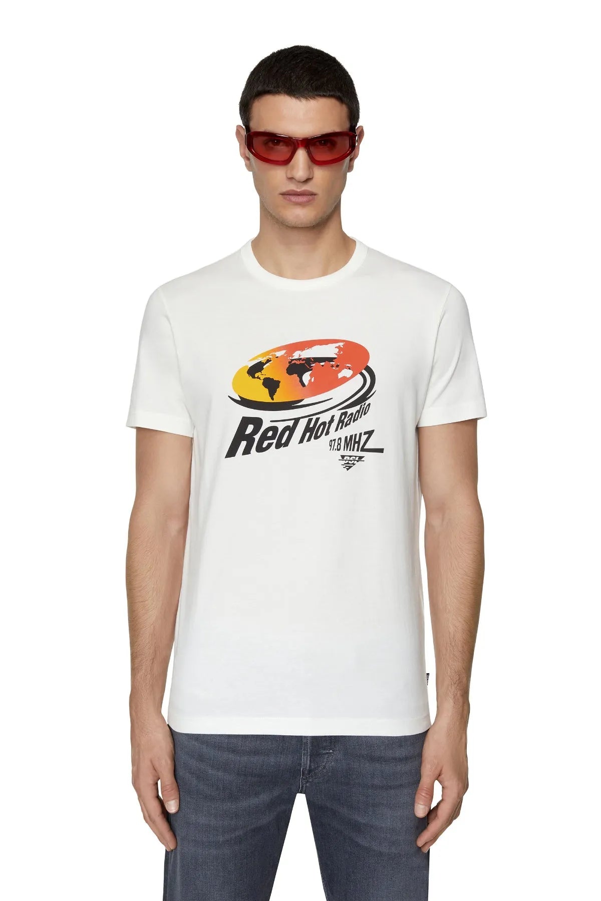 Men's slim-fit T-shirt made from organic cotton jersey. Branded with a 'Red Hot Radio' DSL print on the front.
