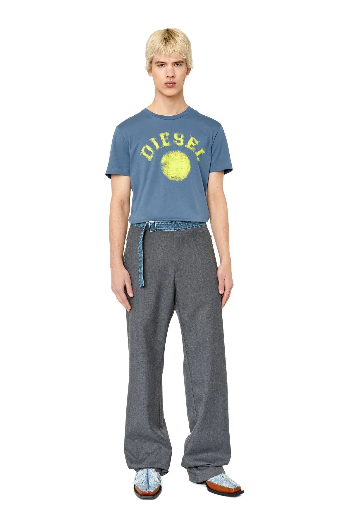 Men's T-shirt in organic cotton jersey, featuring a printed circle and Diesel branding. This style is cut for a slim fit.