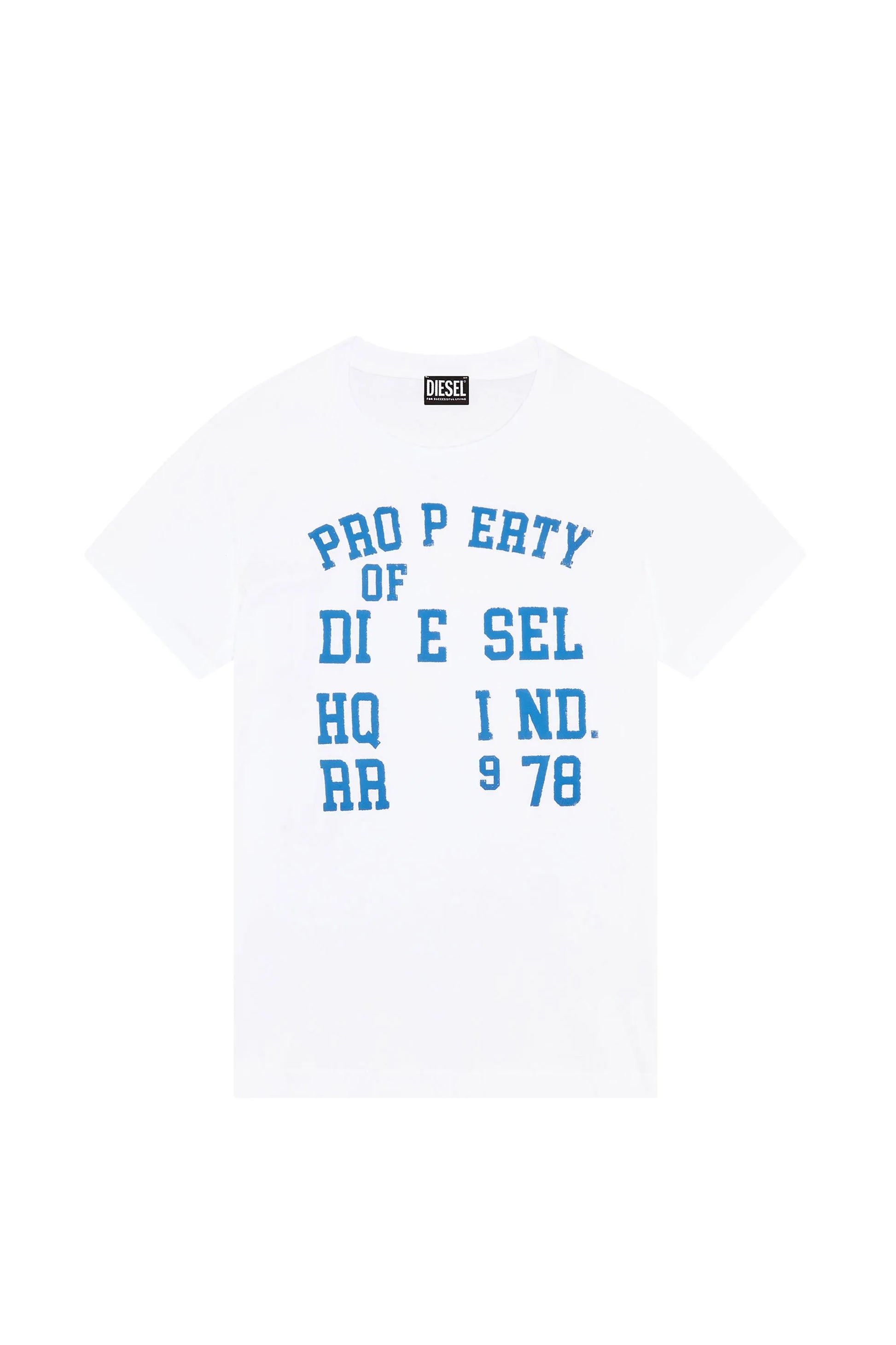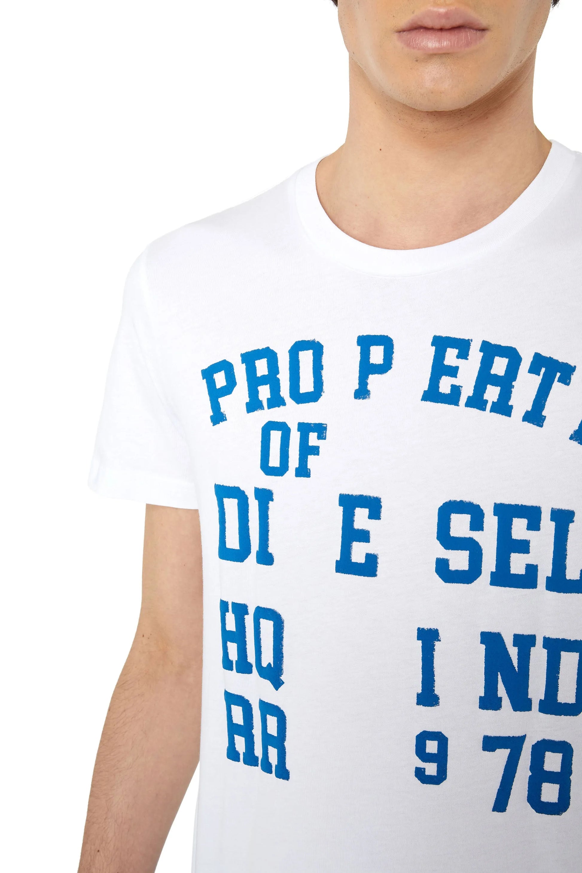 Men's jersey T-shirt made from organic cotton. Cut in a slim profile, it features puffy 'Property of Diesel' branding printed at the front.