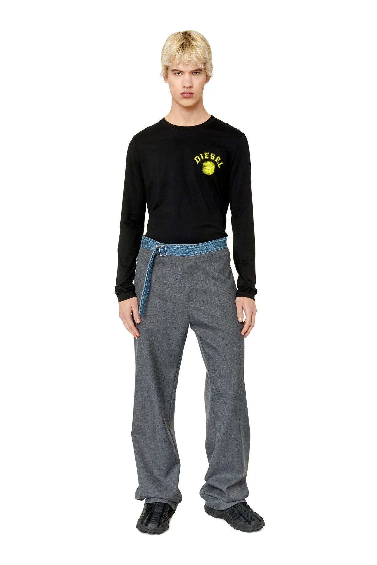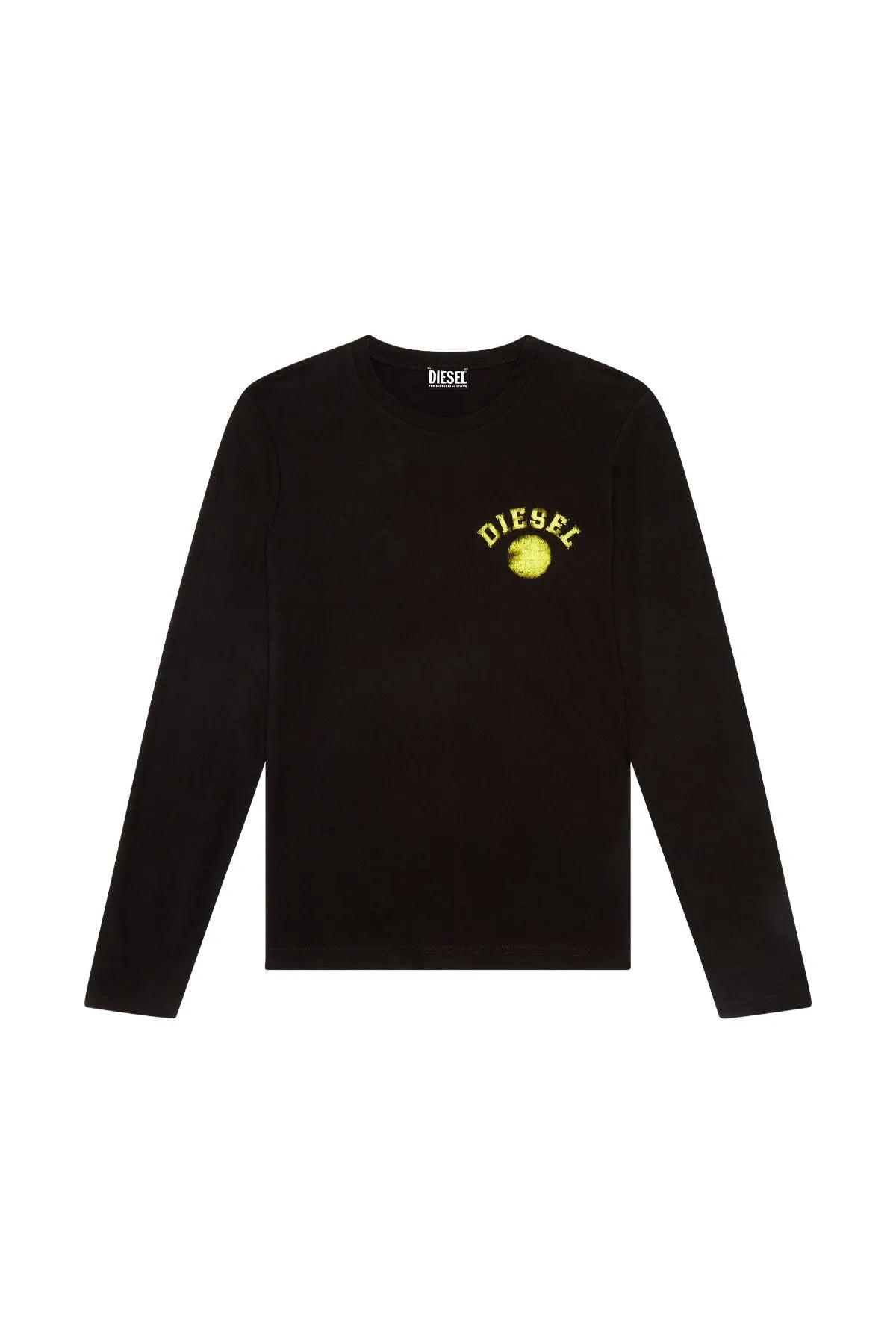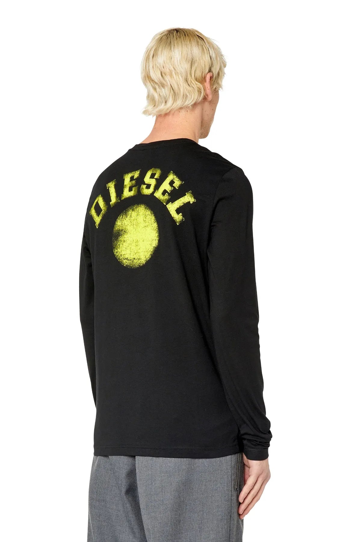 Men's long-sleeve T-shirt crafted from organic cotton. This slim-fitting style is printed on the chest and back with a graphic circle beneath the Diesel logo.