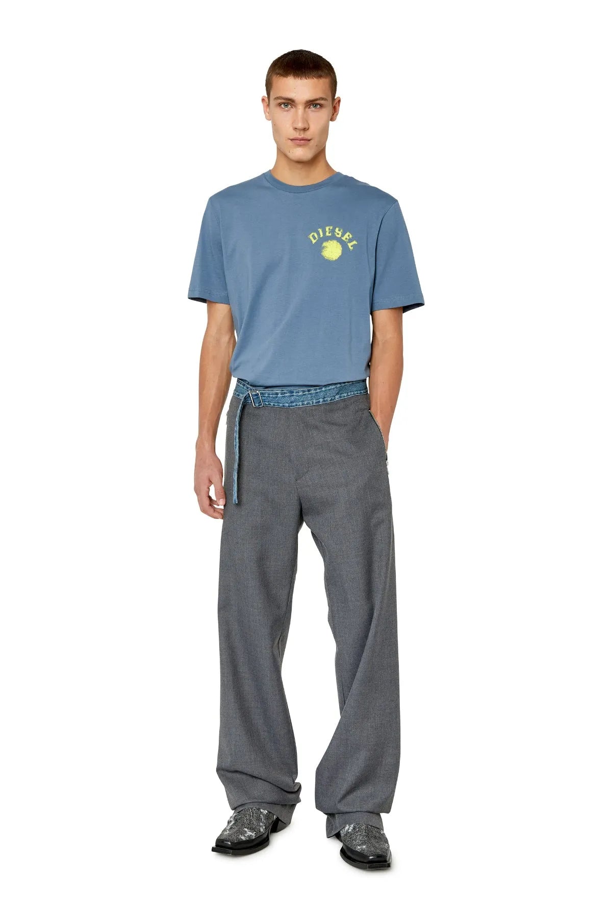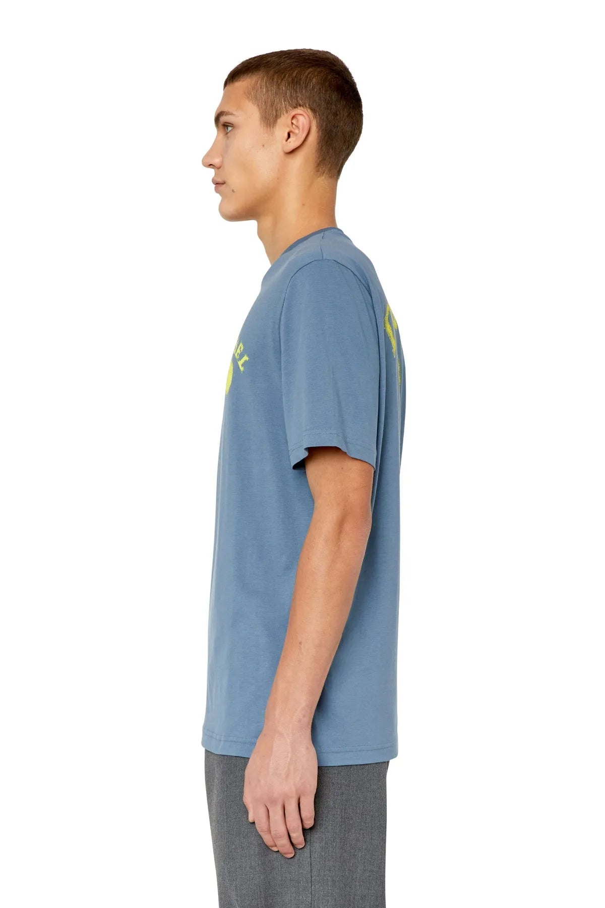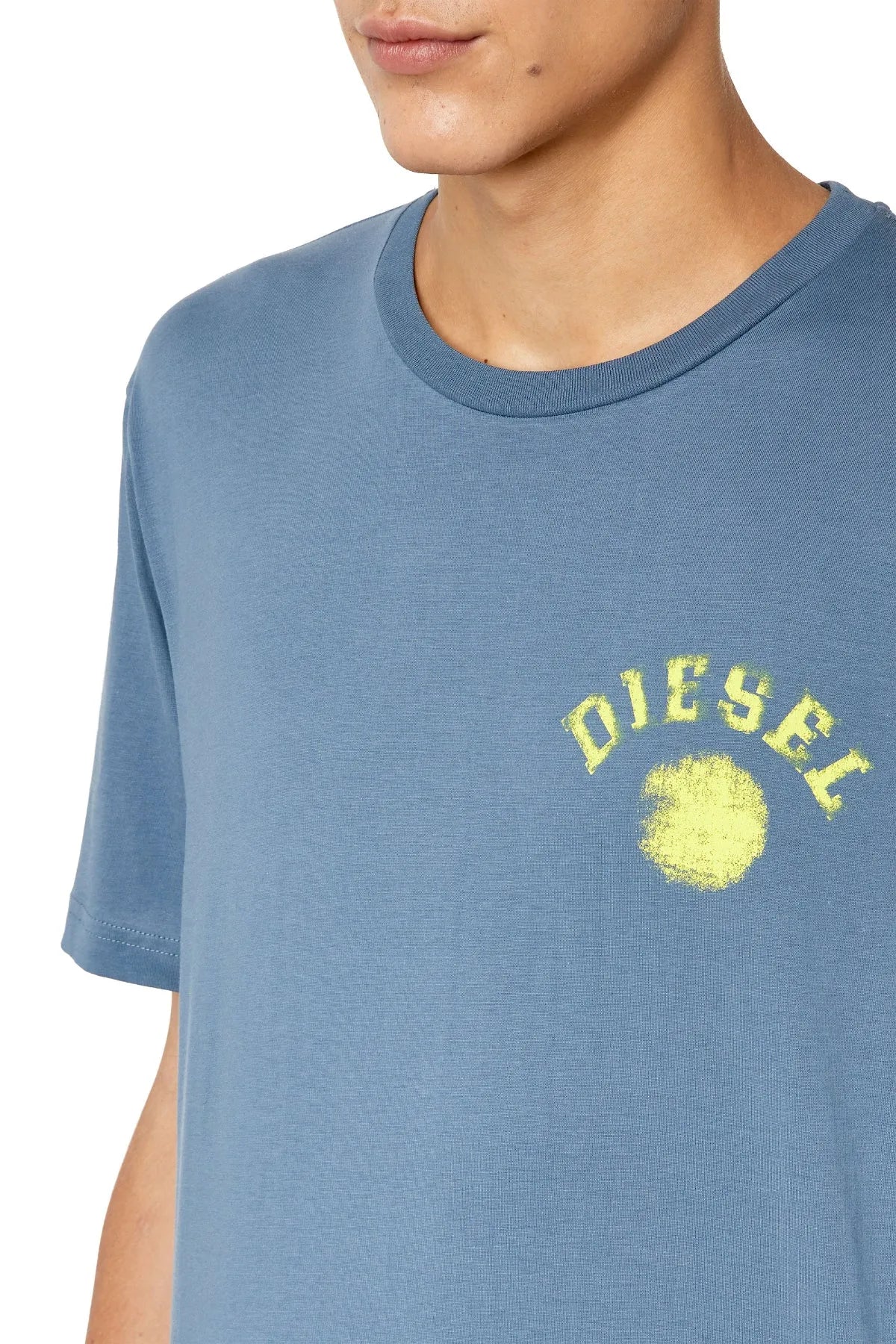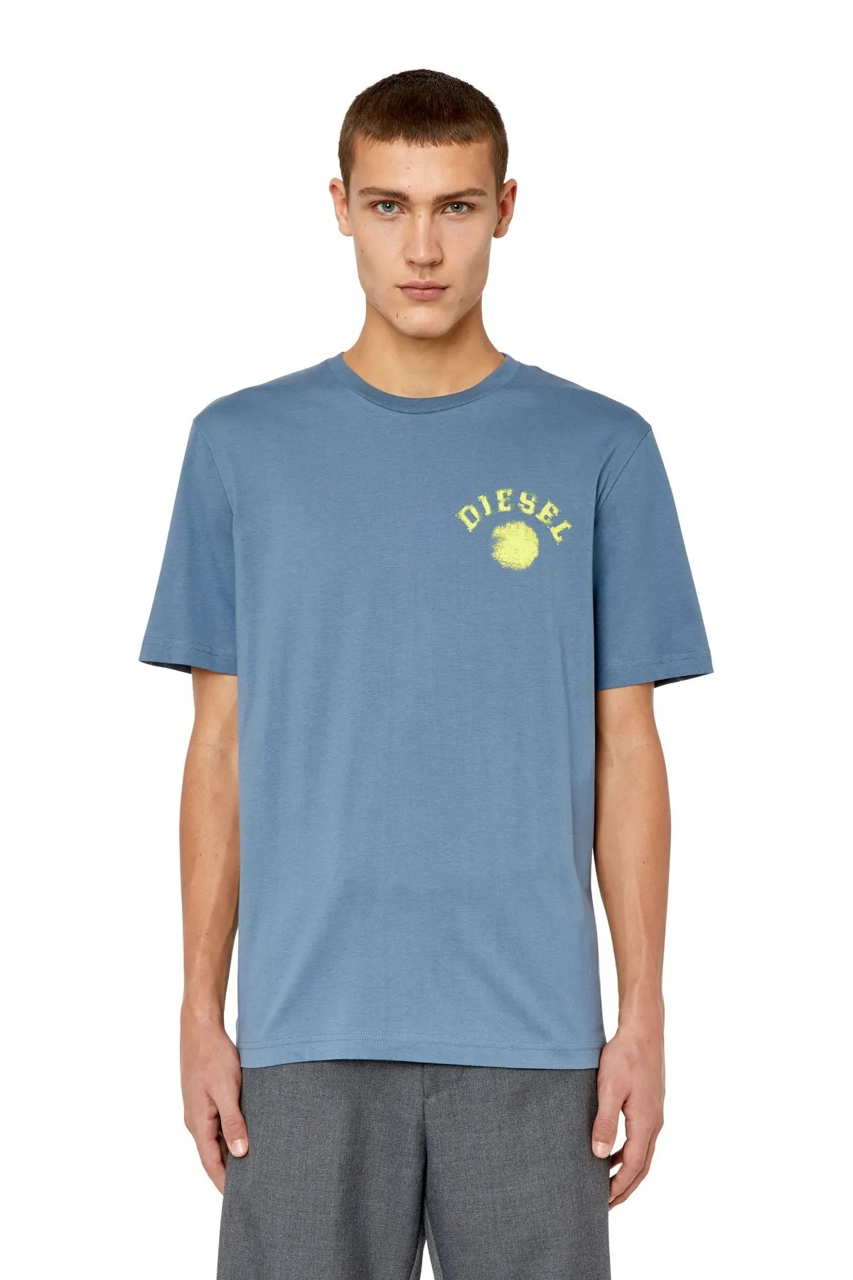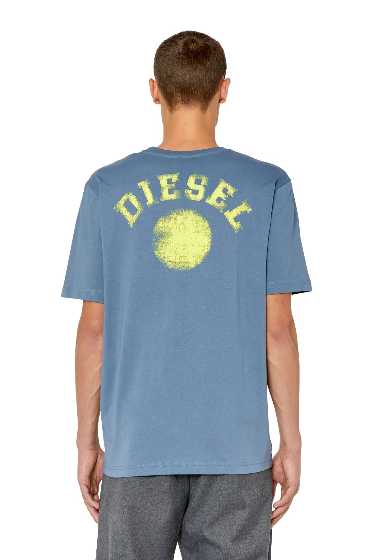 Men's T-shirt with regular fit. Made from organic cotton, this style is detailed on the chest with a print of a circle and Diesel lettering—a blown-up version of the graphic emblazons the back.