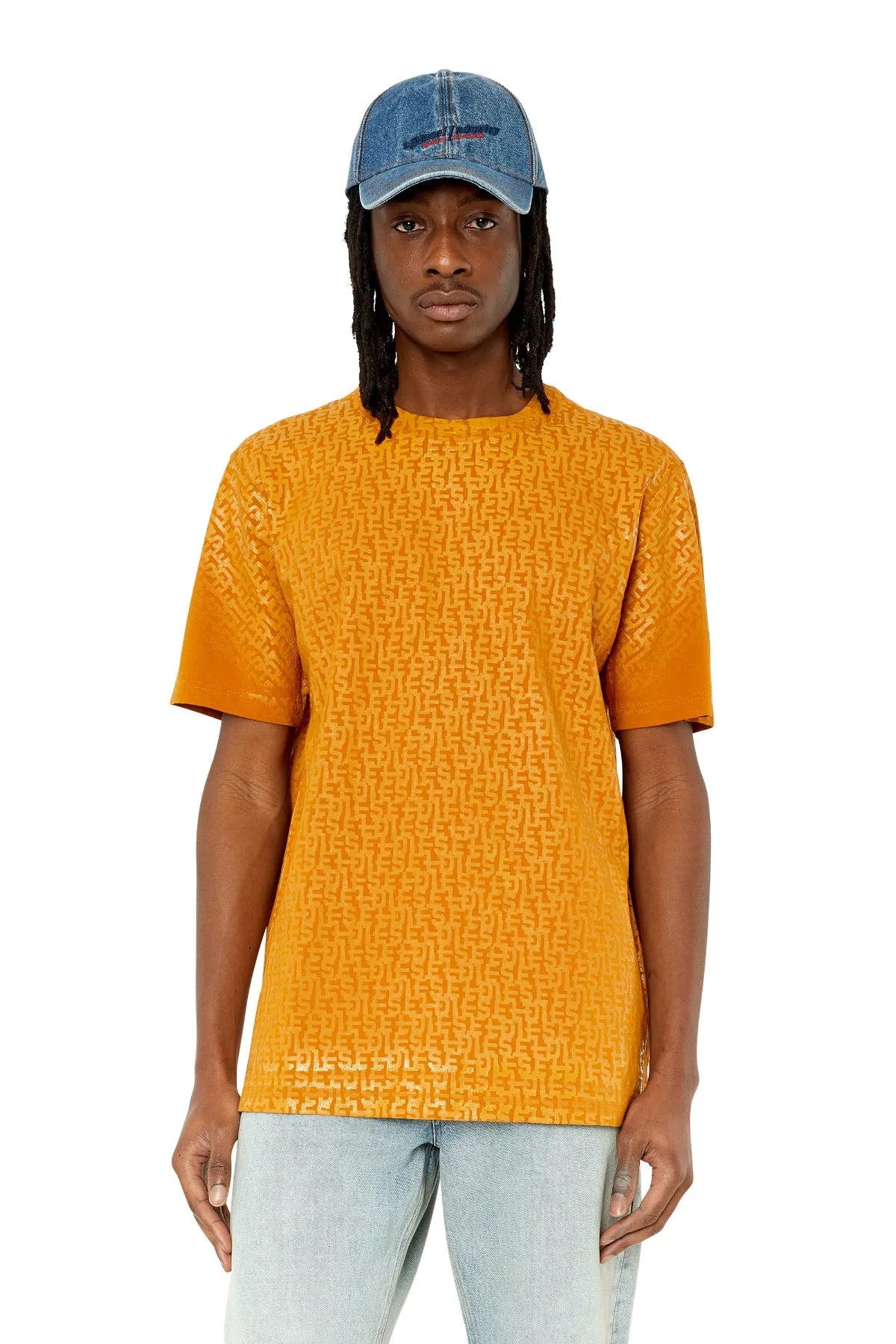 A regular-fit style, this men's T-shirt is cut from cotton jersey decorated with a rubberised Diesel monogram print. The print creates a tonal graphic pattern that's irregular in texture and fades away at the sleeves.