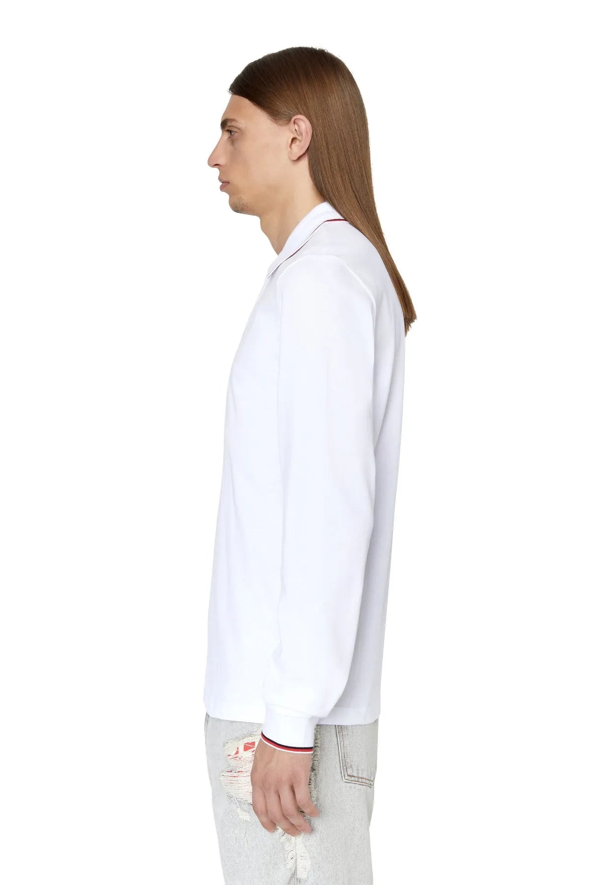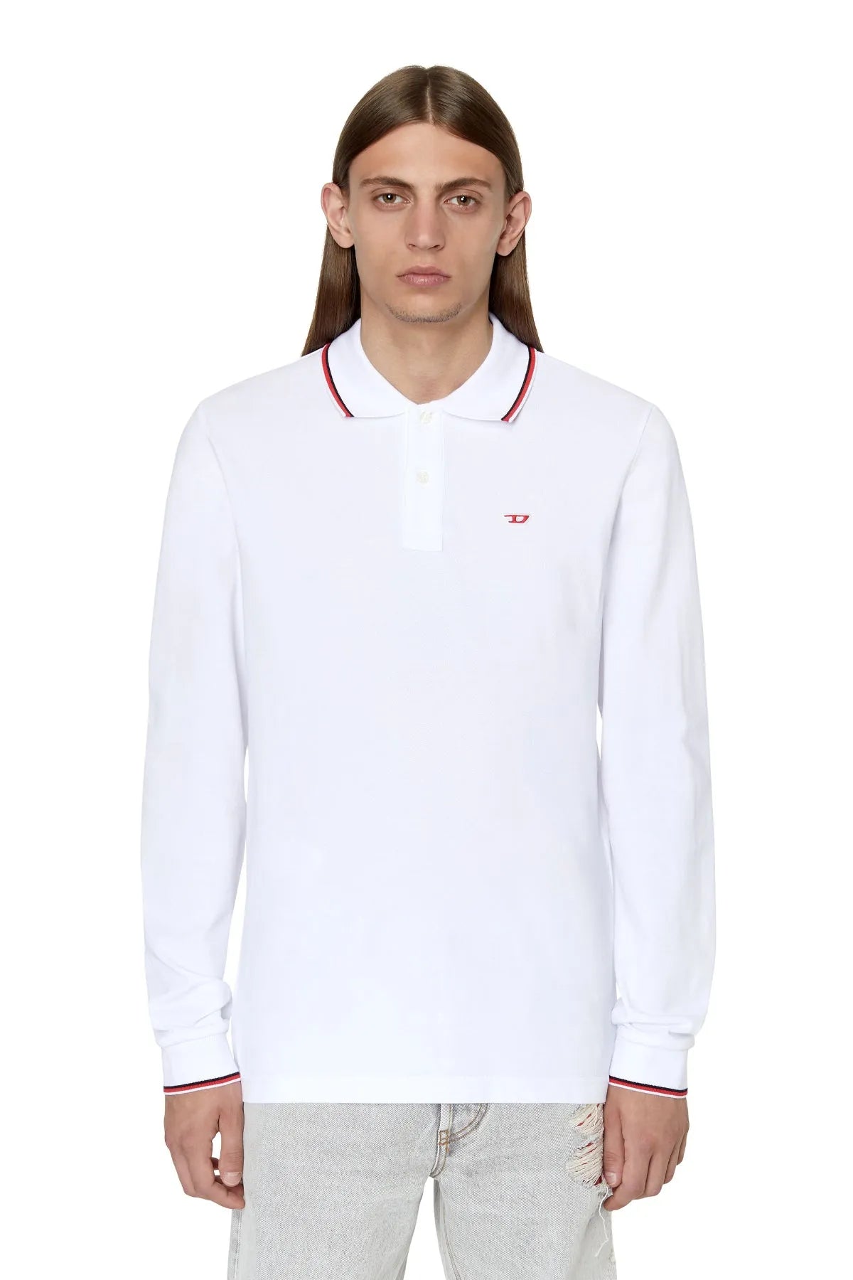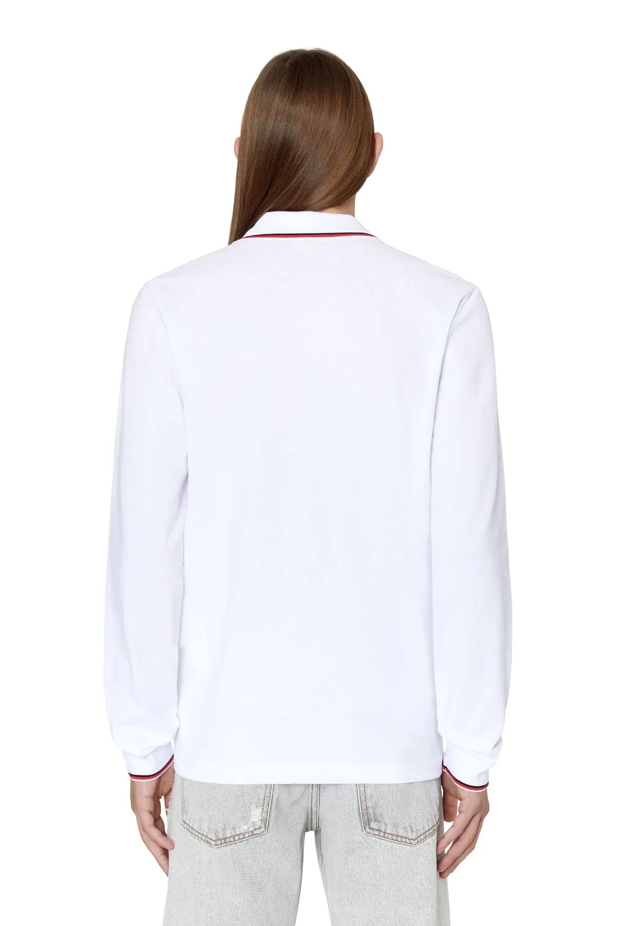 Men's long-sleeved polo shirt, cut to a slim fit from substantial cotton piqué. Edged with stripes on the collar and cuffs, it's branded with a small embroidered D patch on the left chest.
