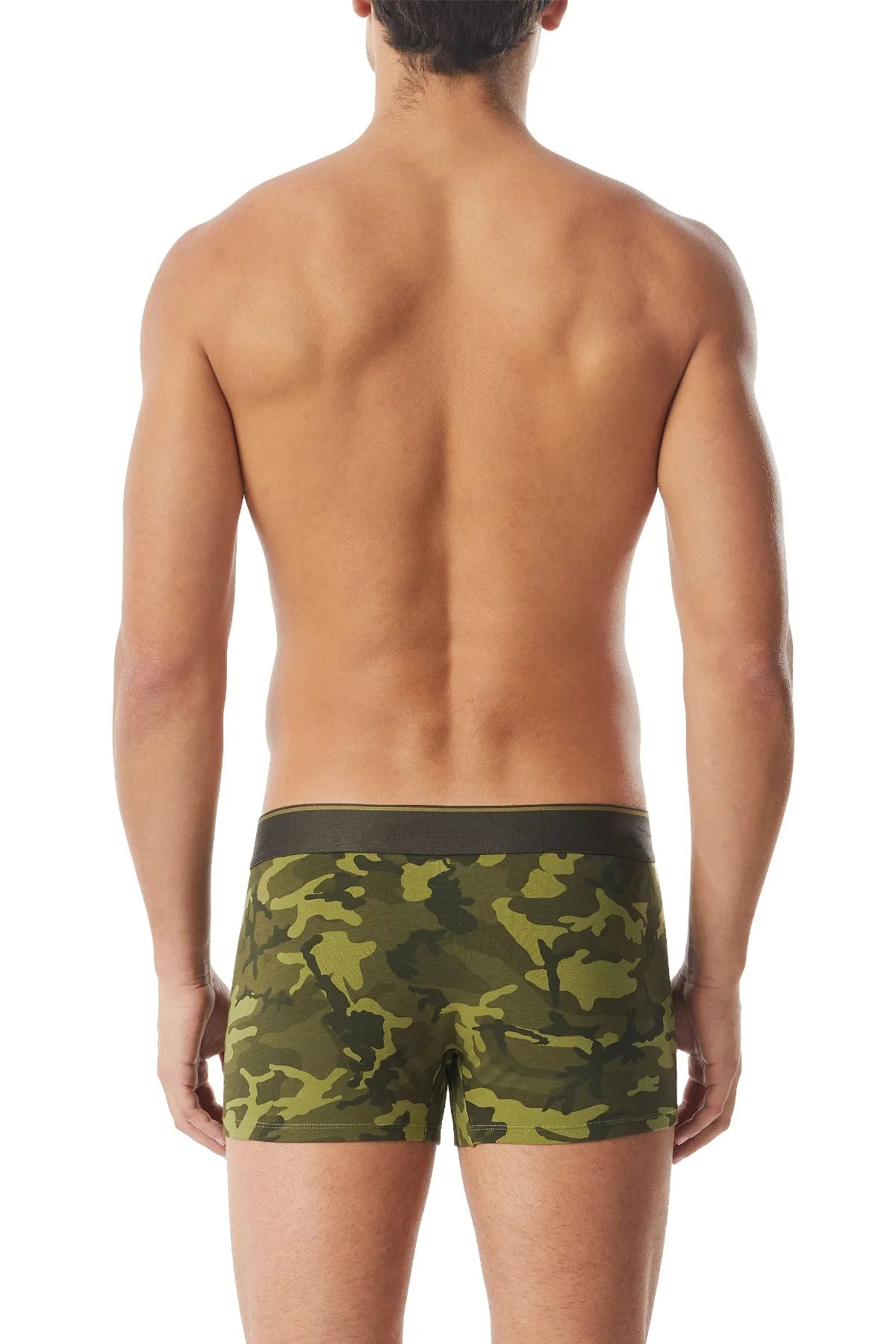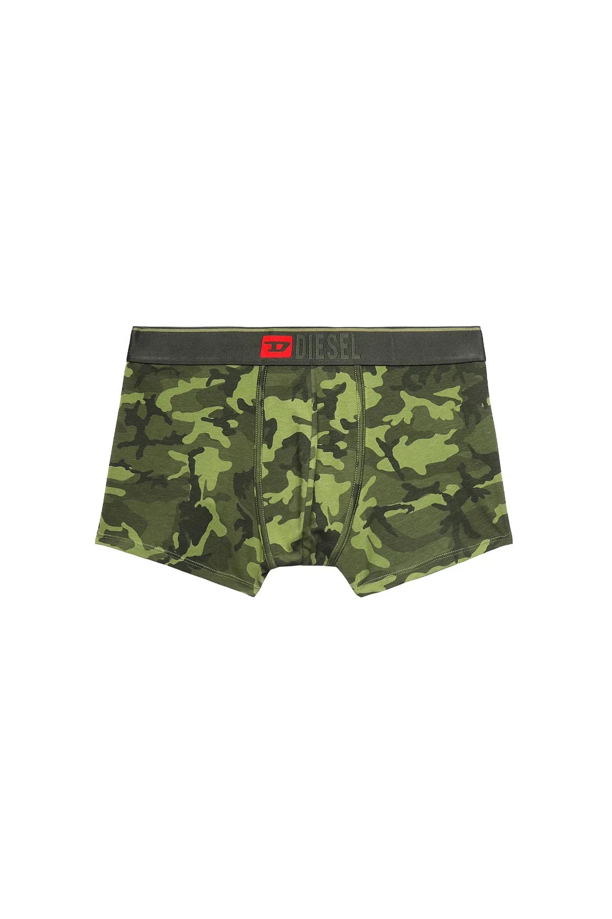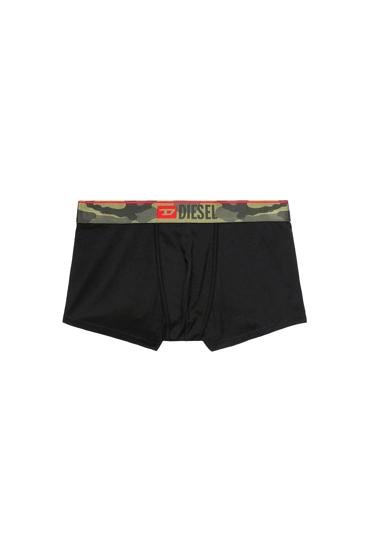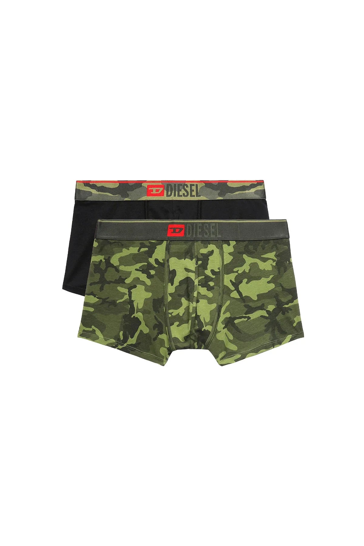 Two-pack of stretch cotton boxer briefs, comprising one plain pair with a camouflage waist and one all-over camo-printed design. Topped with an elasticated Diesel Denim Division logo waistband.