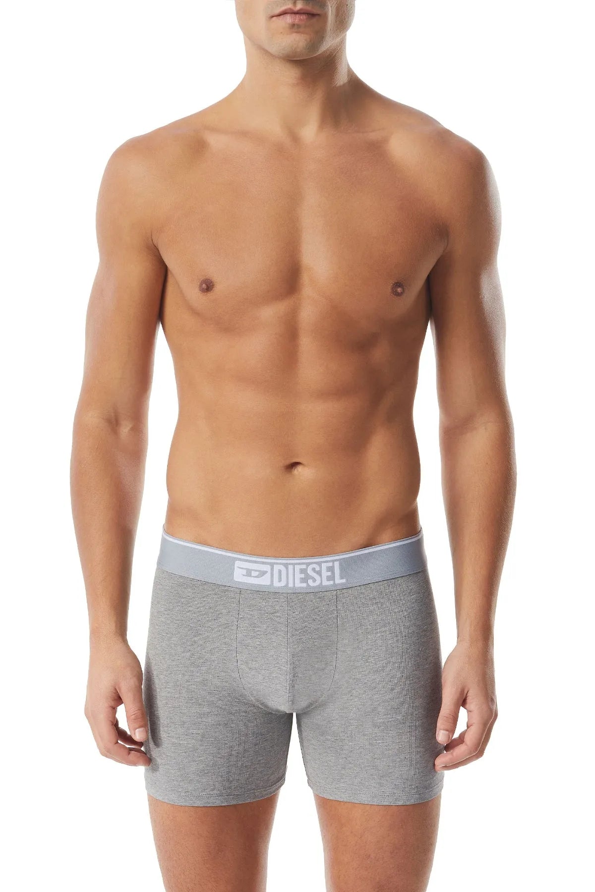 Three pack of plain long boxer briefs cut from stretch cotton. Each pair is topped with an elasticated waistband with a contrast stripe and front Diesel Denim Division logo.