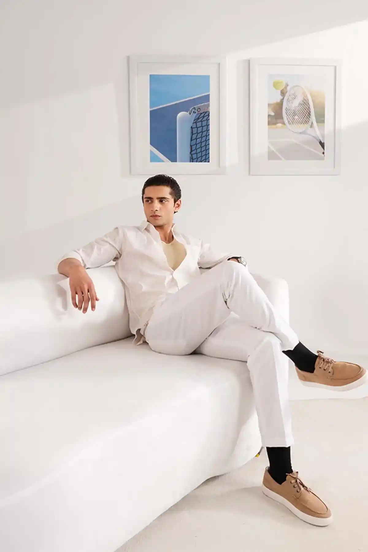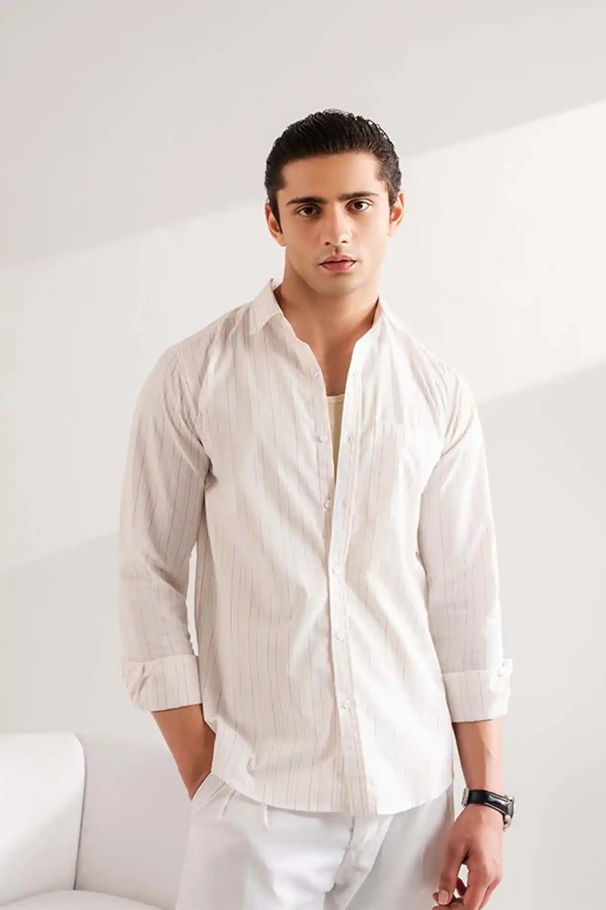 Experience the elegance of our premium quality fabric featuring a stylish stripe design. This lightweight striped shirt boasts a smooth, crisp hand feel, making it ideal for year-round wear. Its subtle texture ensures a clean, polished appearance and facilitates easy pattern matching. The fabric irons beautifully, and we believe this versatile stripe looks sharp in any setting. Paired with our smart modern collar, it's always a reliable choice.