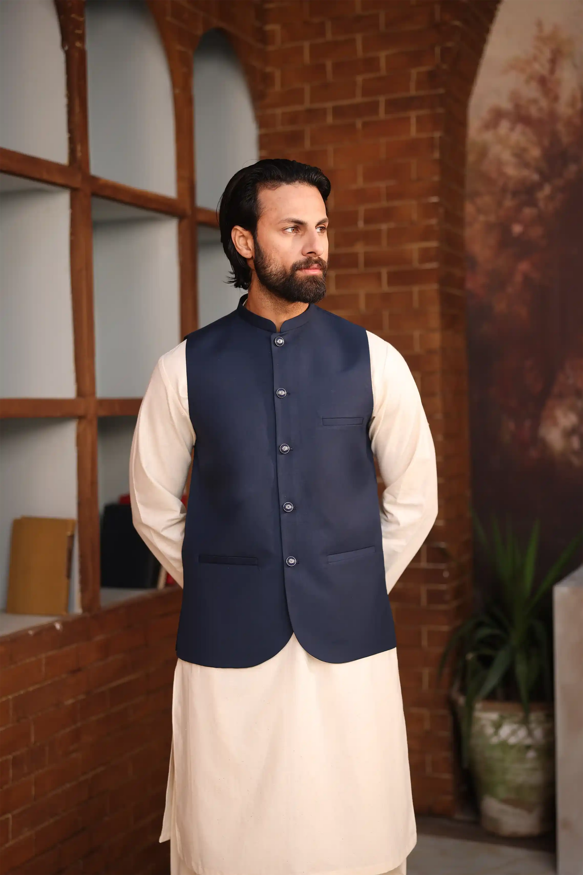 Urban Elegance: Crafted for the contemporary man, this smart-fit premium waistcoat combines Eastern heritage with a sharp, modern look.