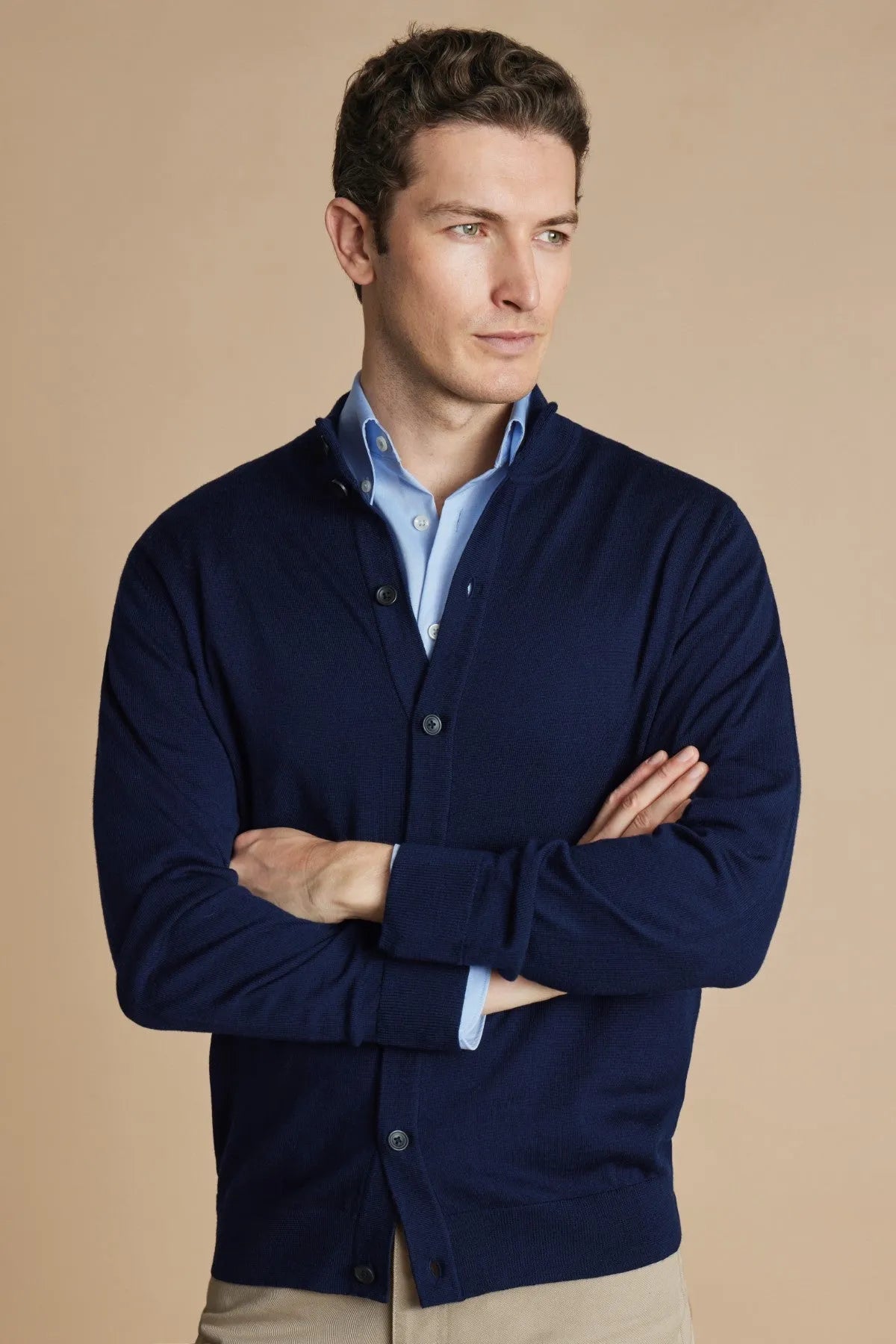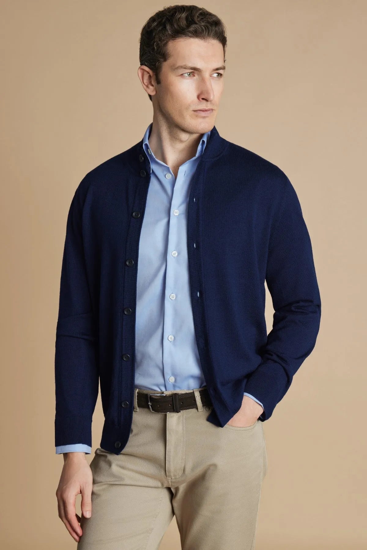 "Imagine a cardigan crafted with pure Merino wool fibres that are sumptuously soft and lightweight. This temperature-regulating piece is naturally breathable, making it a staple for your year-round rotation.