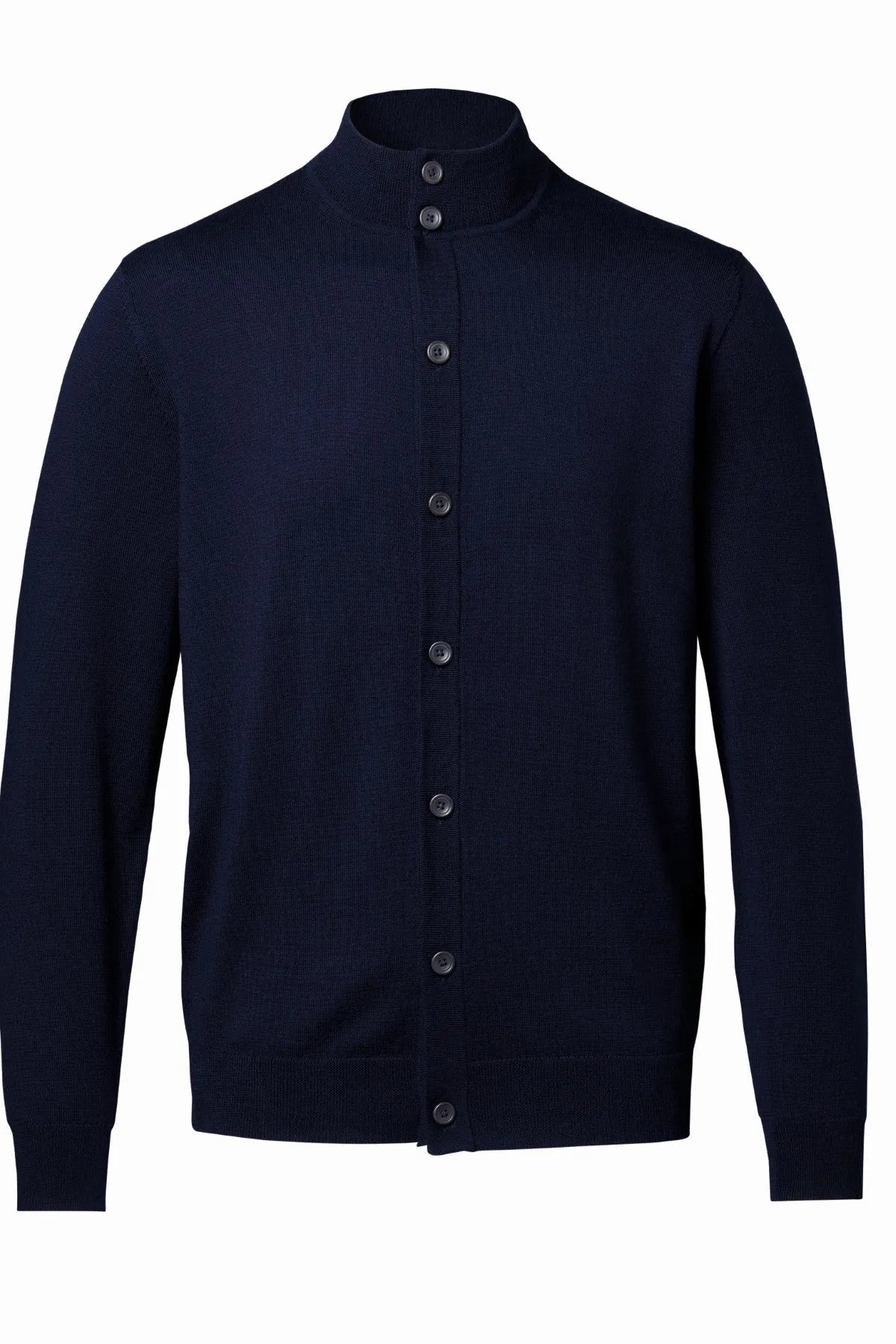 Navy Blue Button Through Funnel Neck Cardigan
