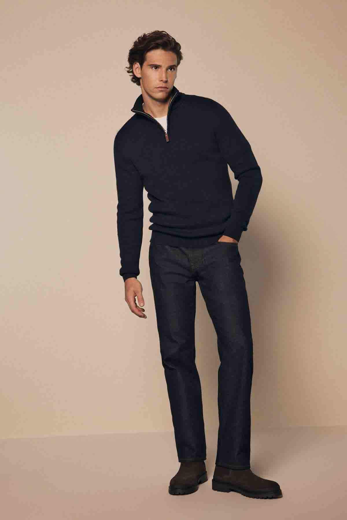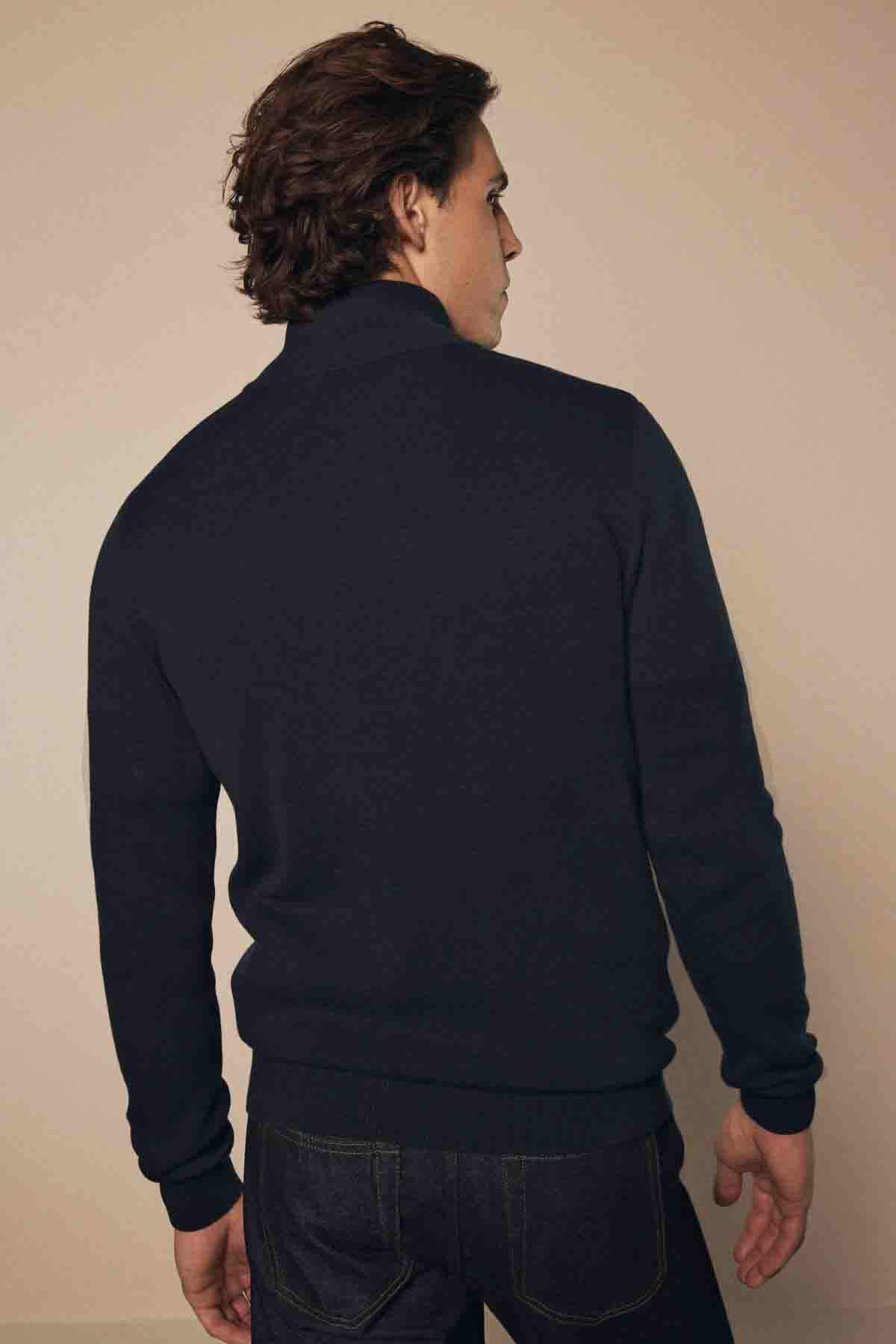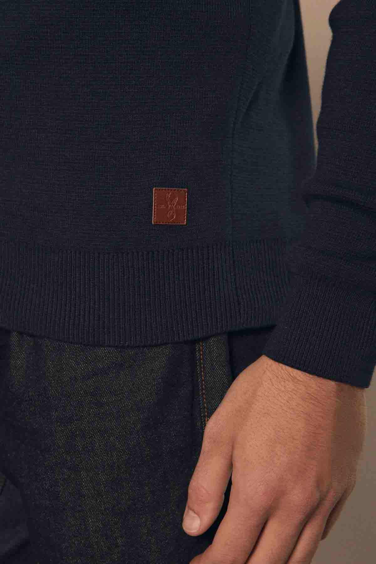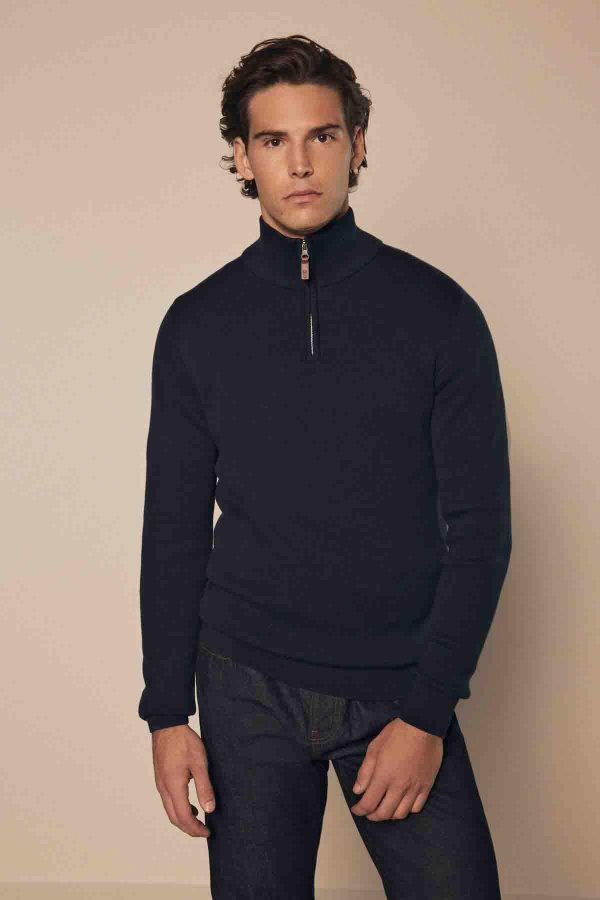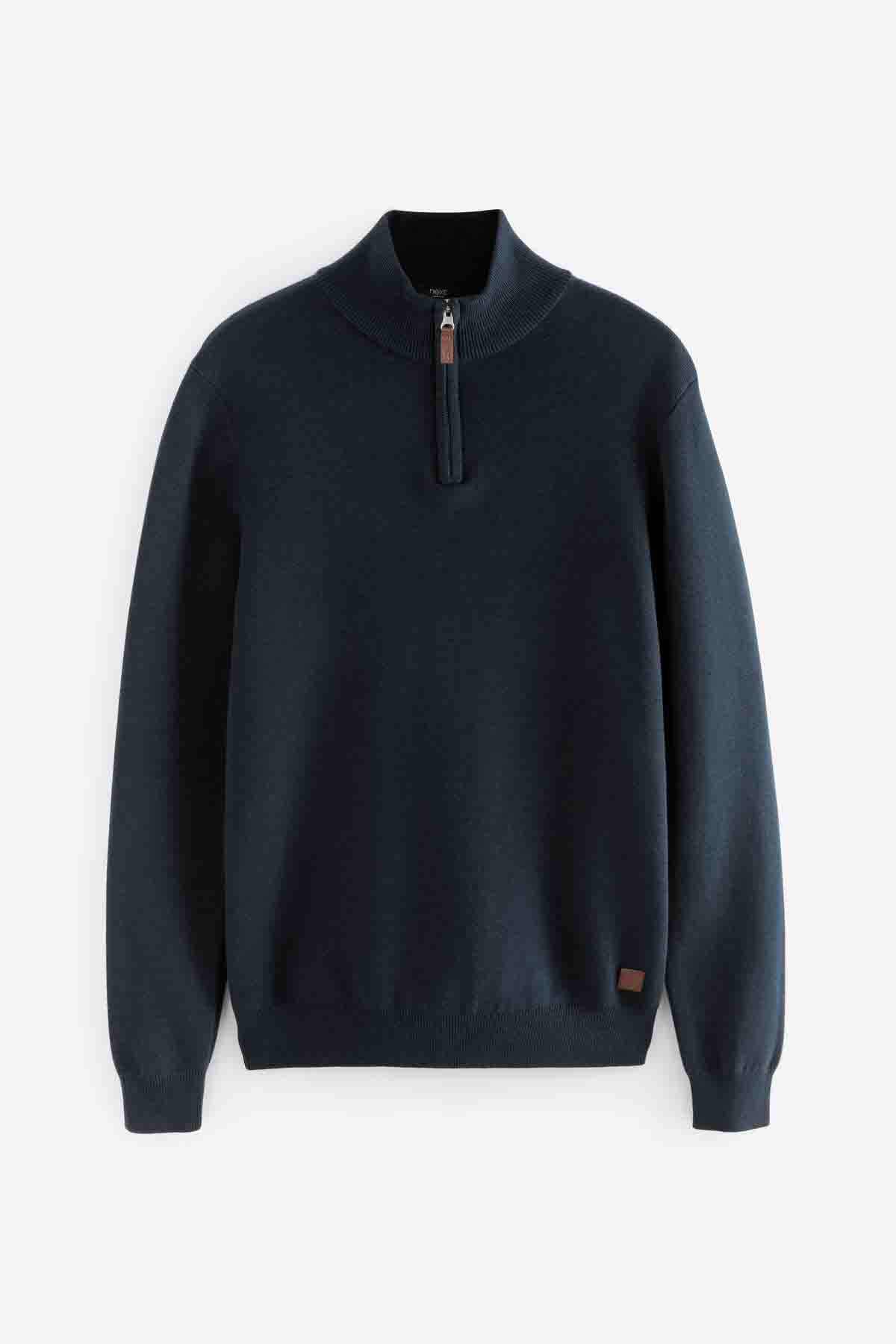 Navy Blue Plain Regular Fit Cotton Premium Quarter Zip Jumper