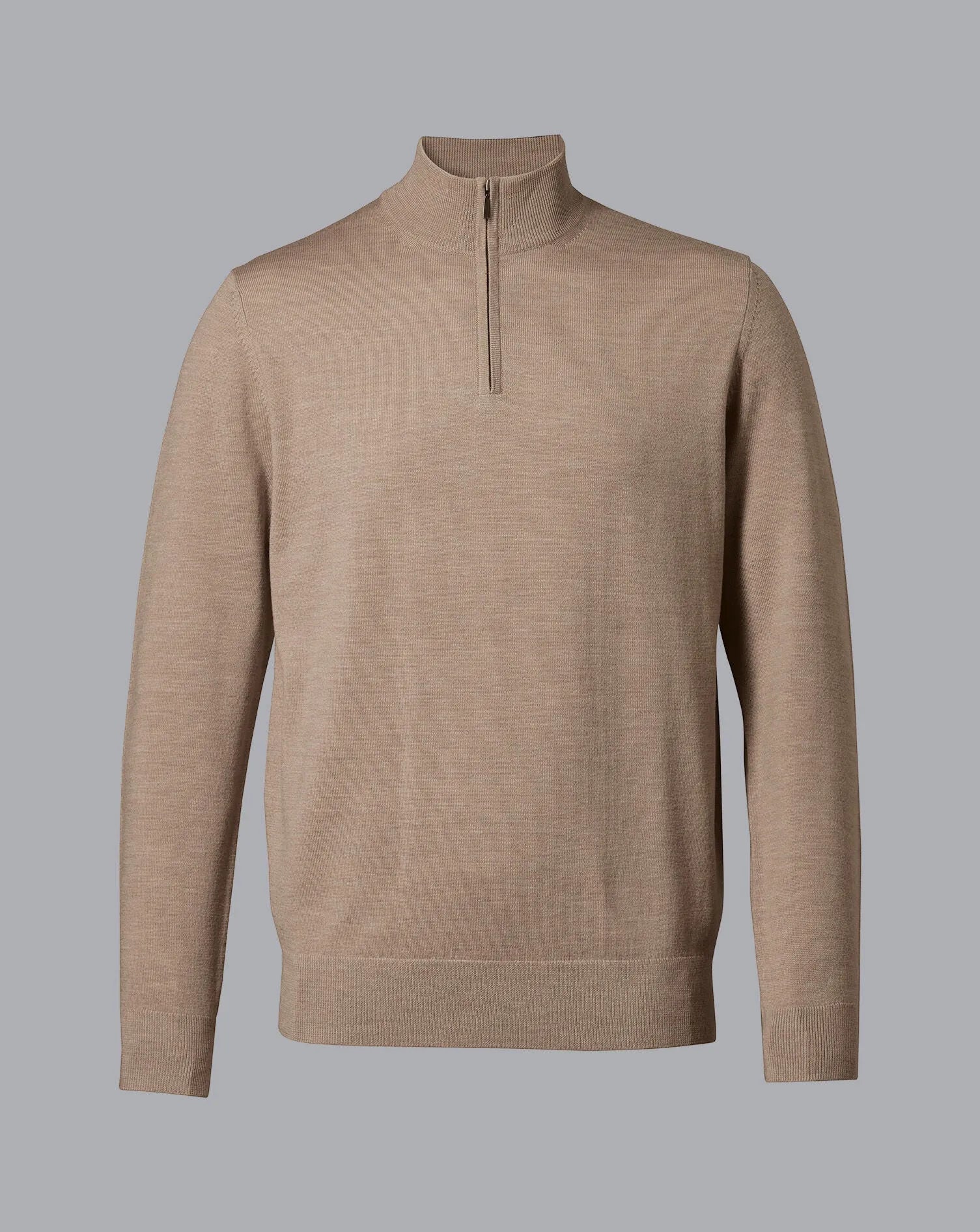 This refined-yet-casual zip neck is crafted from pure, Wool mark-certified Merino wool. Known as nature's performance fabric, Merino is comfortably breathable and temperature regulating - and has the softest handle of any knitwear. We've gently washed it for an even silkier finish, resulting in a supple jumper that subtly moulds itself to your body. The styling is simple, letting the fine fibers take center stage. There's traditional ribbing on the cuffs and hem and the understated neckline means this jumper looks superb when worn with a button-down shirt.