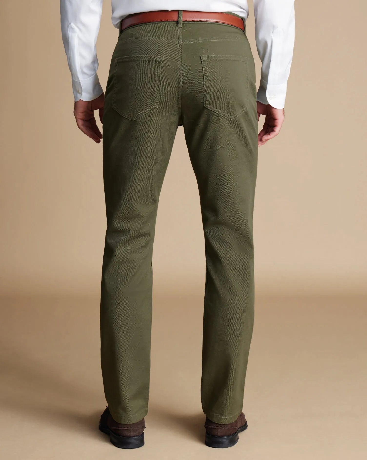 Olive Green Twill Slim Fit 5 Pocket Jeans