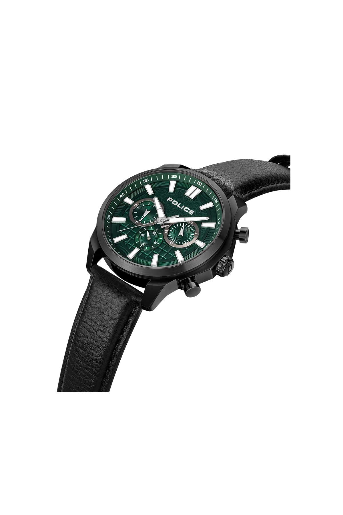 Police Pewgf0021007M Gents Rangy 44Mm Green Black Leather Multifunction