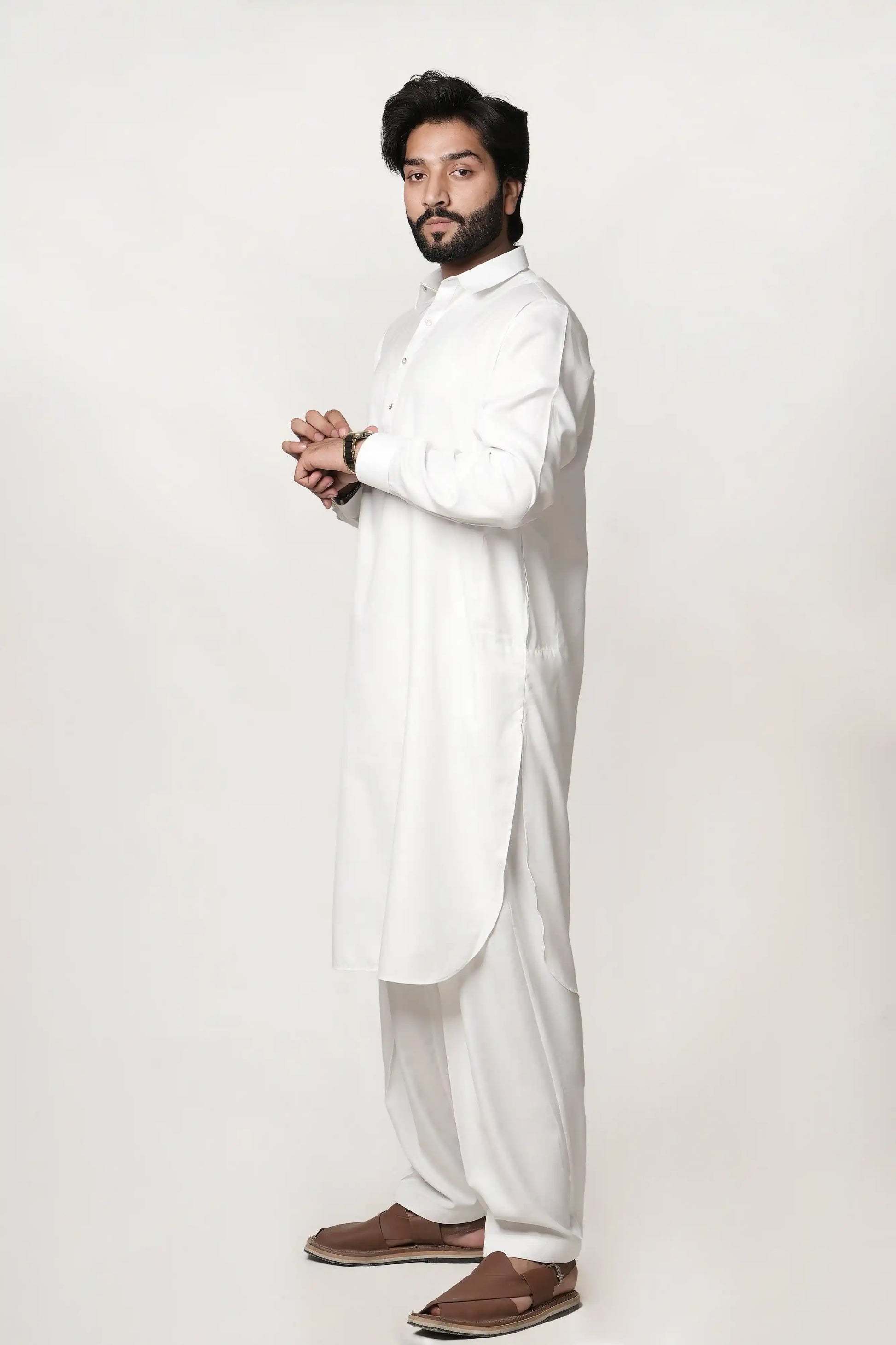 Experience the perfect blend of tradition and modern craftsmanship with our men s Kameez Shalwar. This outfit is made from high-quality fabric and offers breathable comfort and a Basic Fit, making it ideal for daily wear or festive occasions. The kameez features a classic Shirt collar, straight-cut design, and button detailing, while the shalwar is tailored for ease of movement.