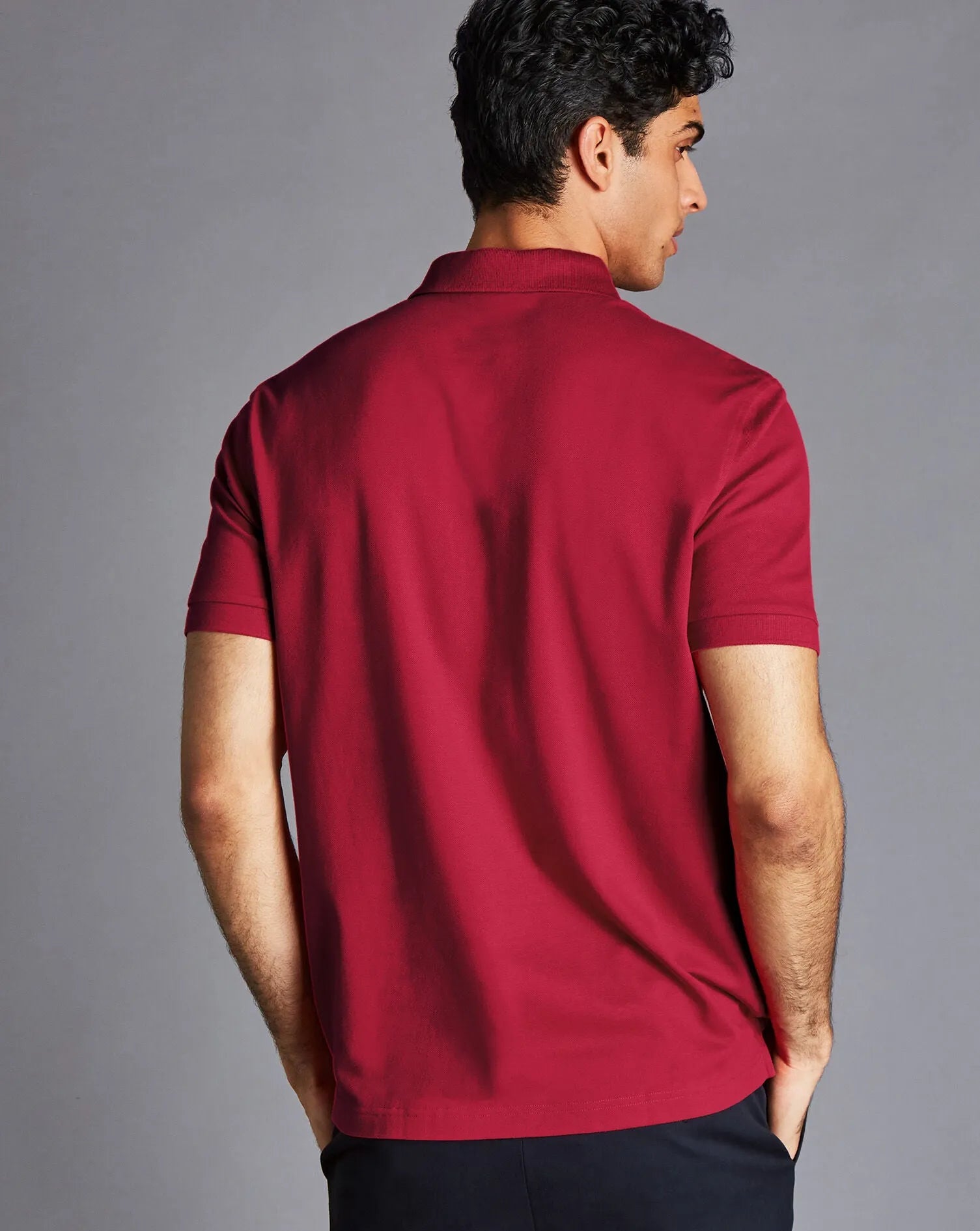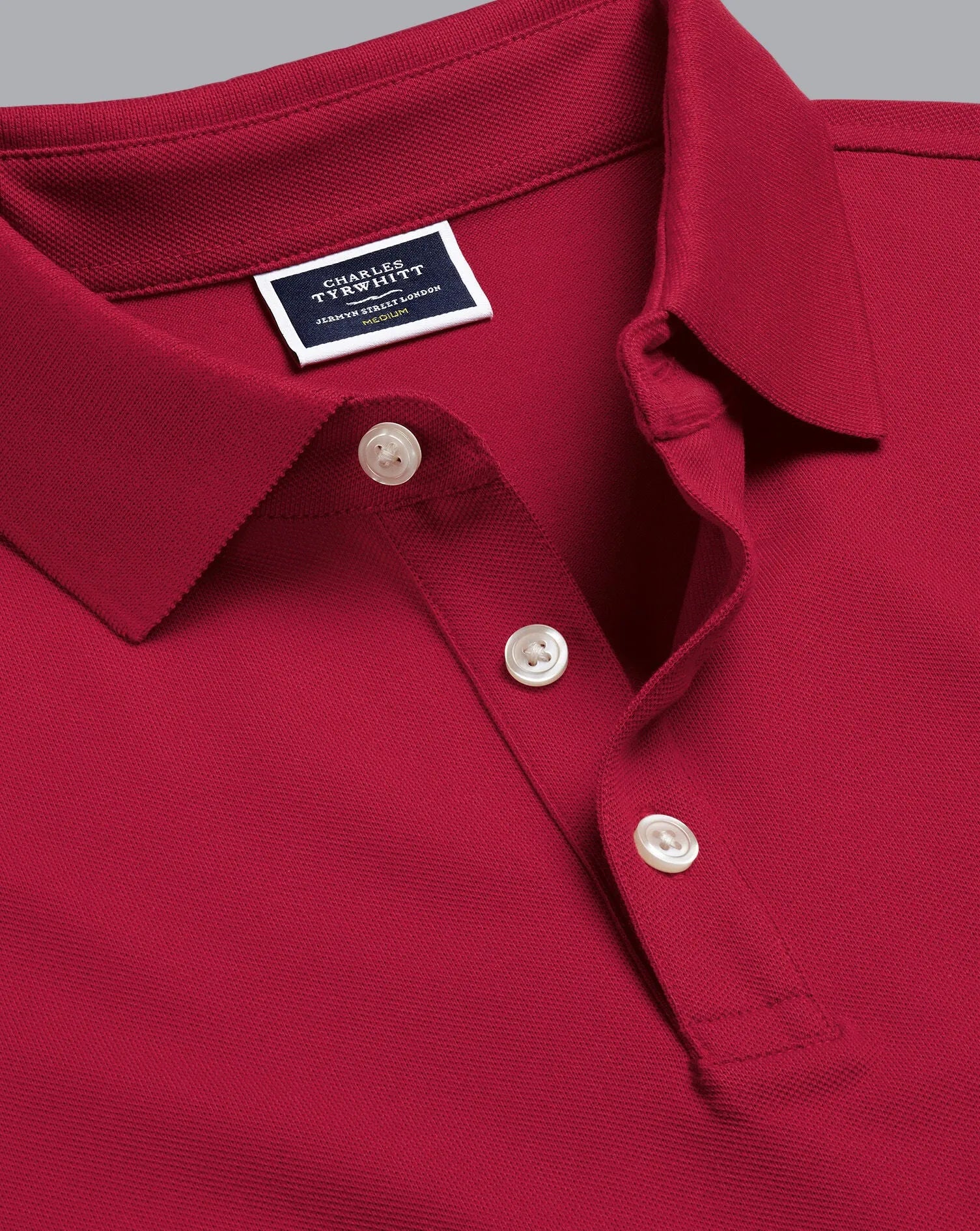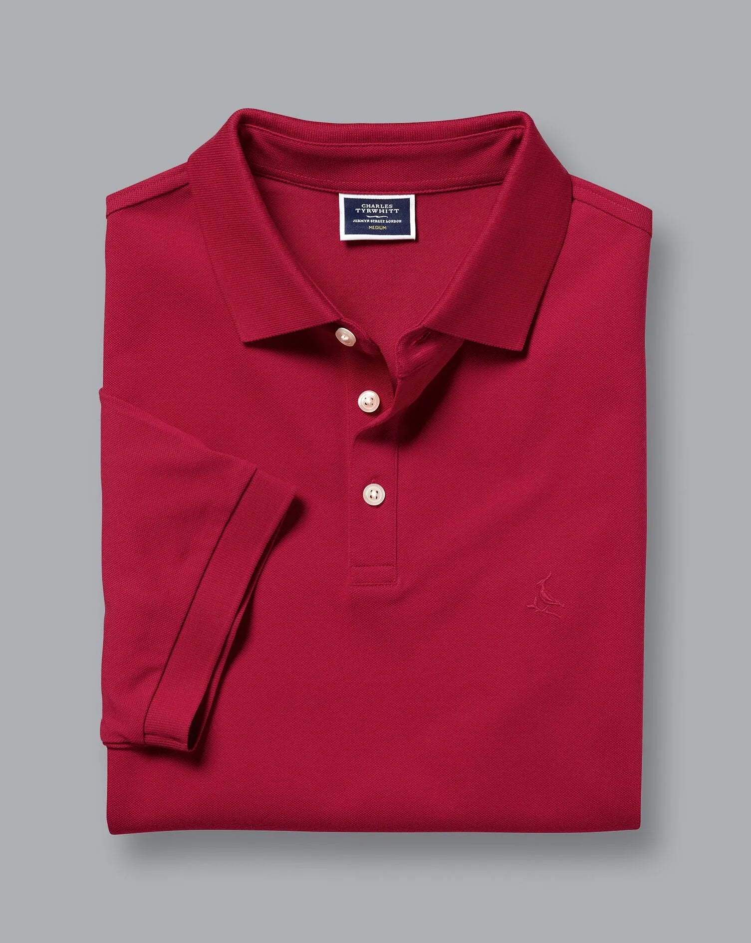 Red Solid Short Sleeve Cotton Tyrwhitt Pique Polo