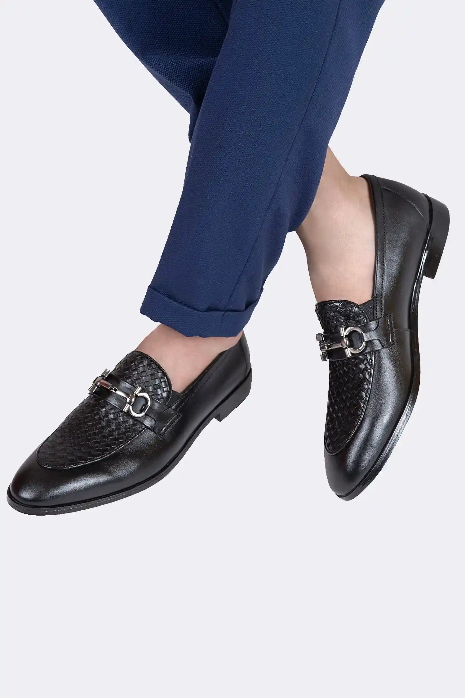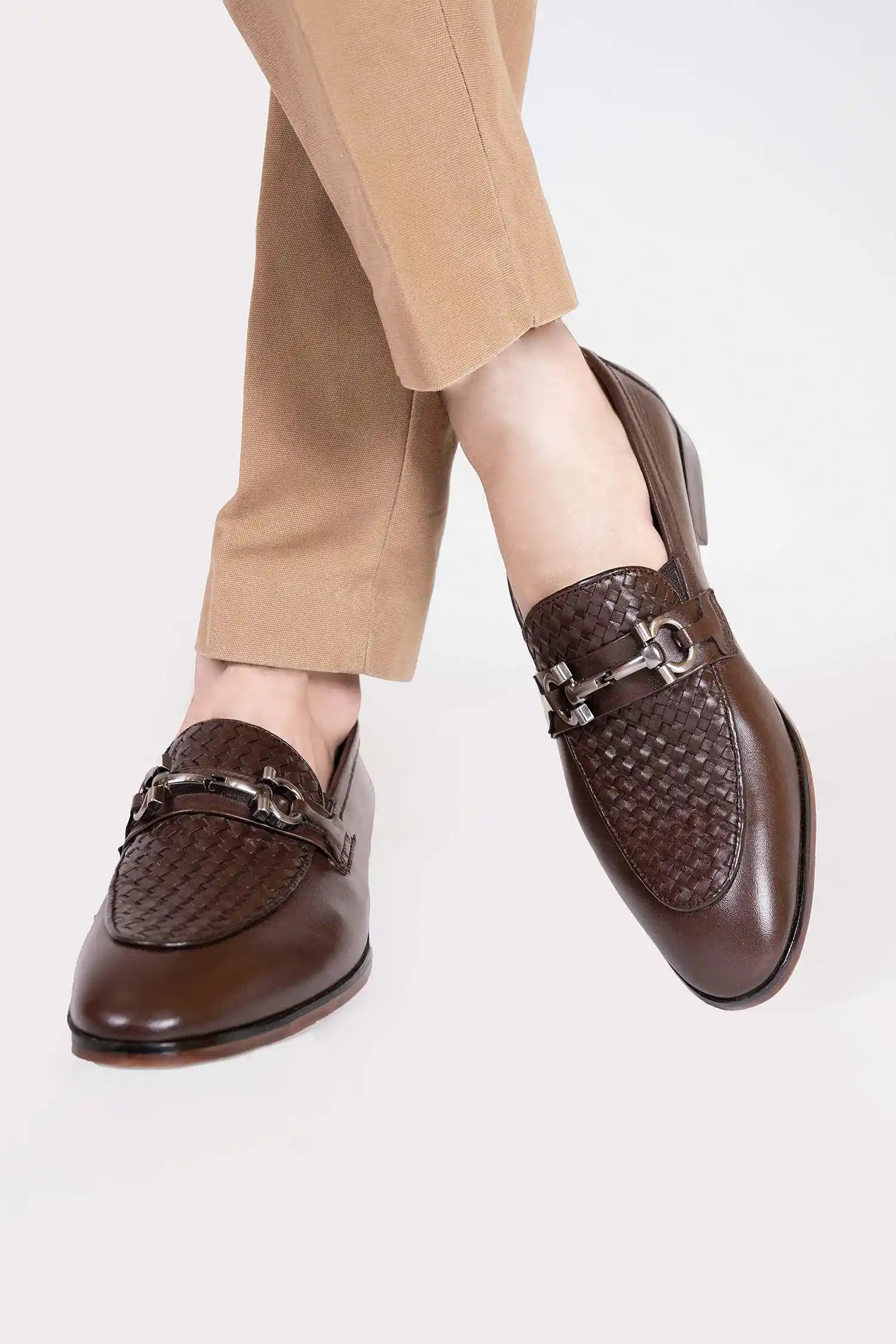 The weave makes its way, yet again, into these JULKÉ slip-on shoes. Featuring a fully woven plug, the medium shine leather surface sports a metallic horsebit buckle in the classic style at the top. Constructed atop a vegetable-tanned leather sole, topped with an anti-slip rubber heel for a confident stride.