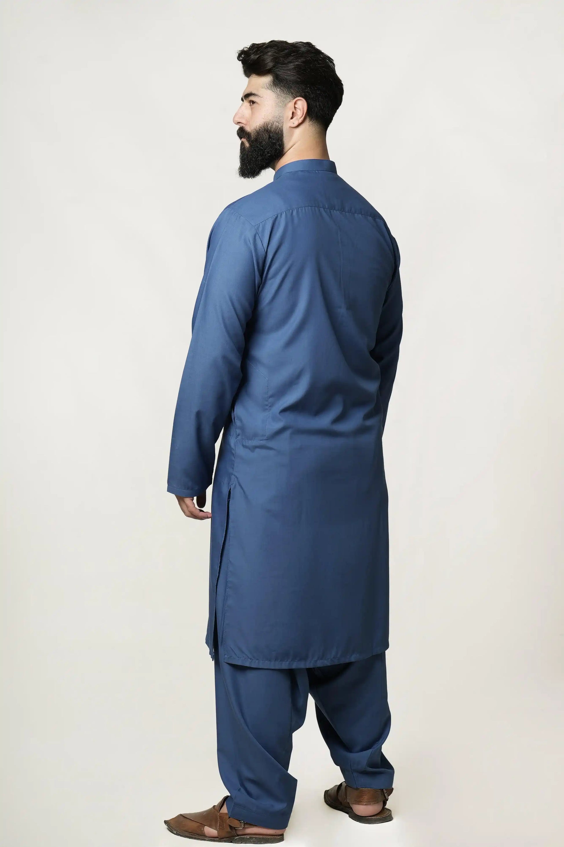 Royal Blue Cotton Band Collar Shalwar Kurta