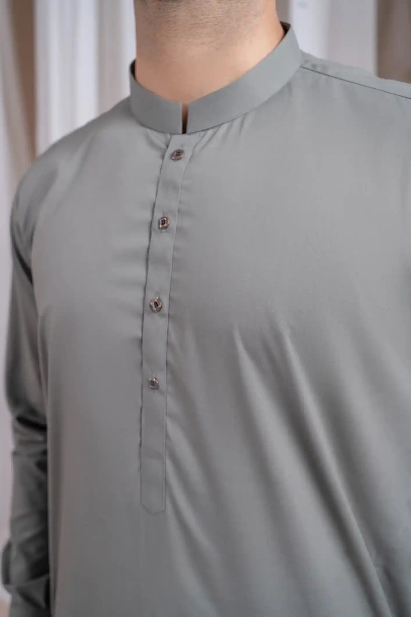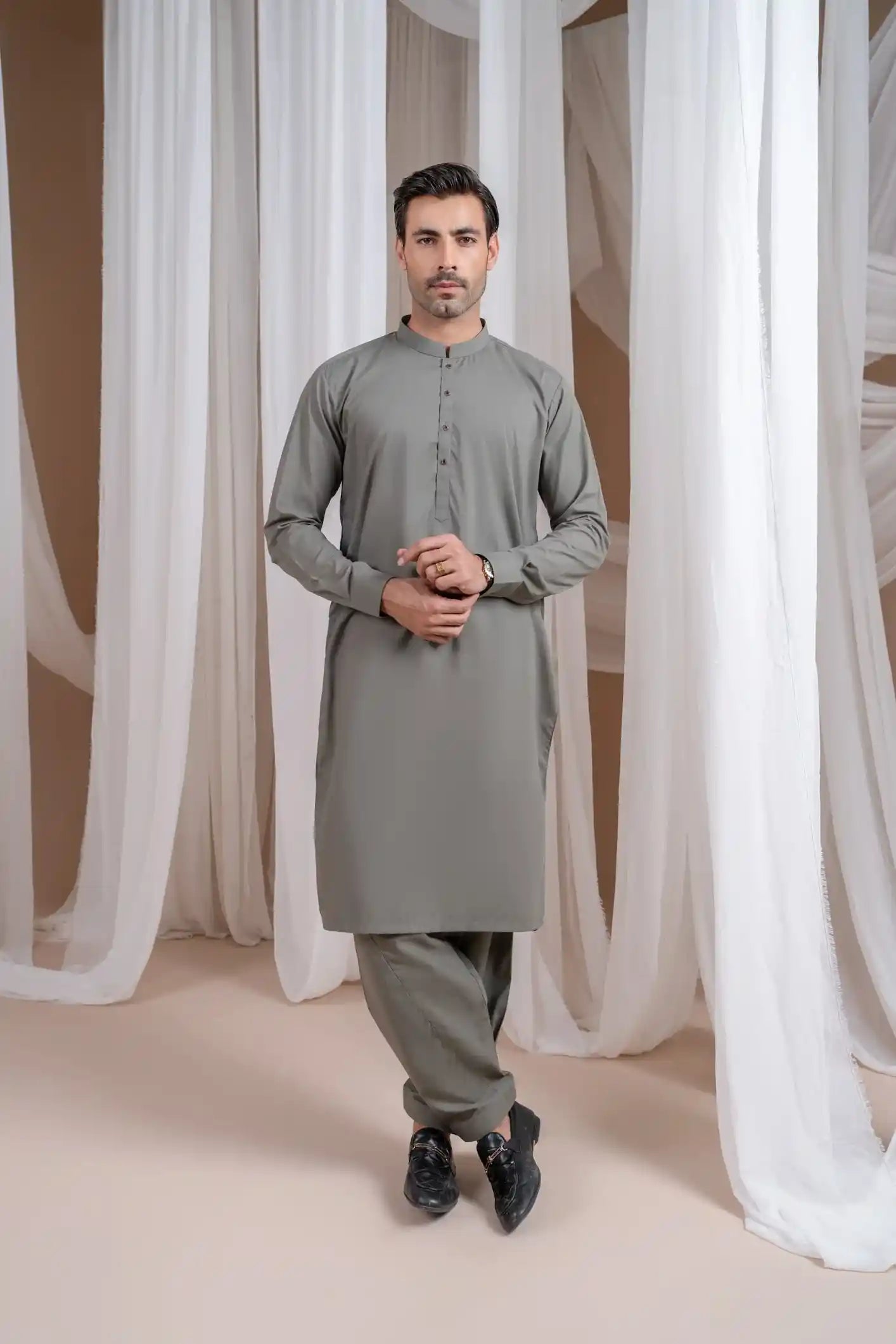 Sand Grey Luxury Blended Kurta Shalwar - Men