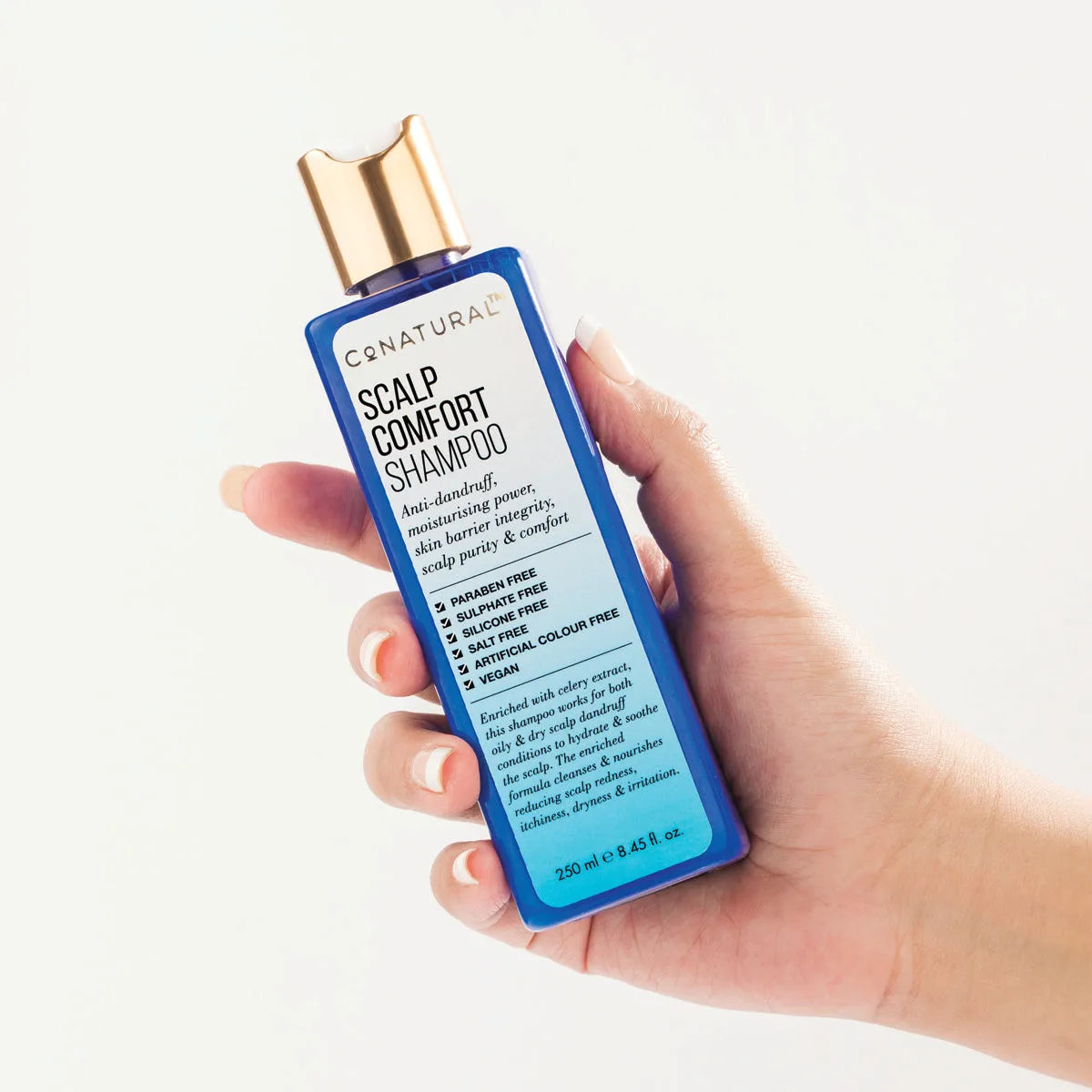 - Scalp Comfort Shampoo provides immediate and long-lasting hydration and reinforces skin barriers.