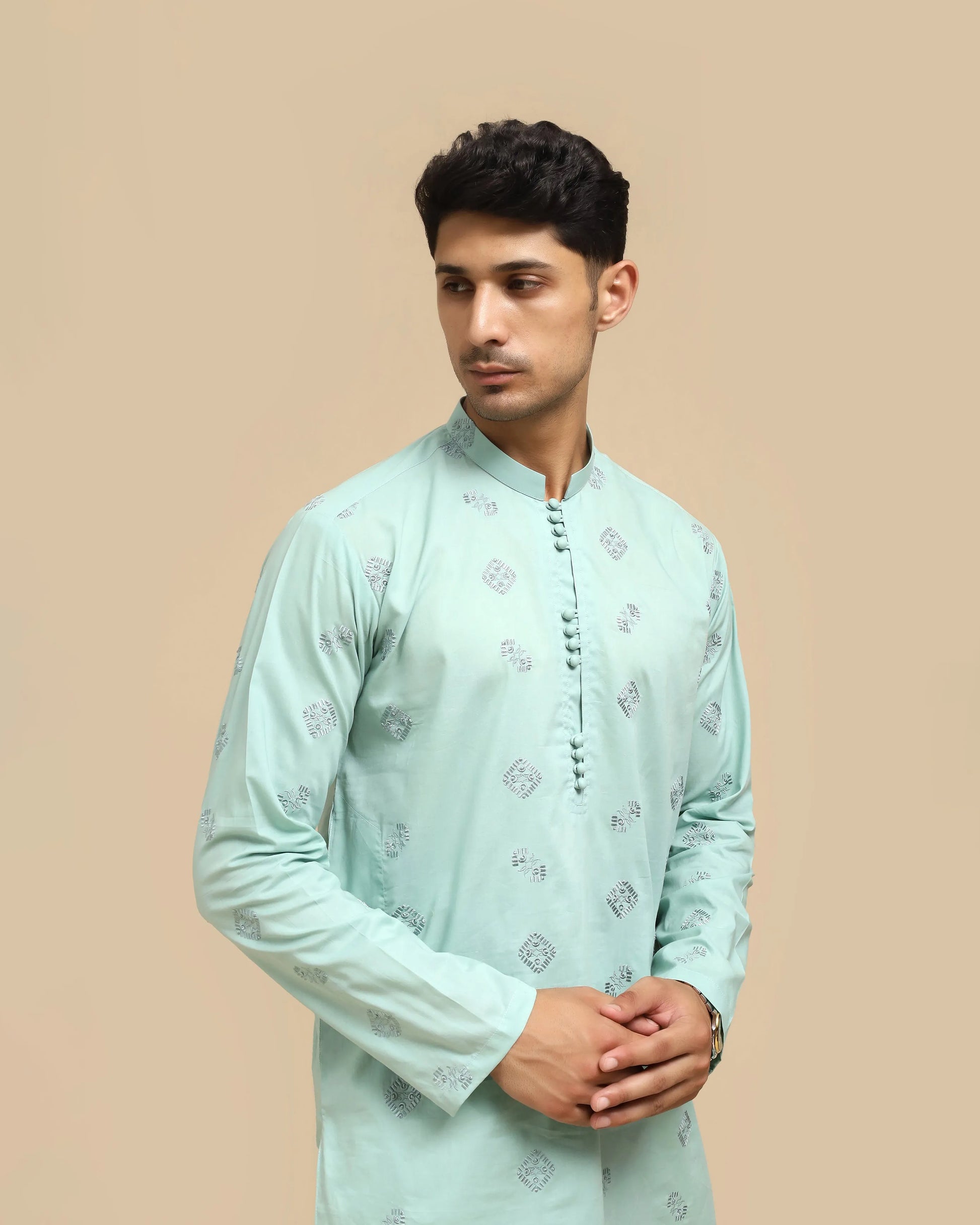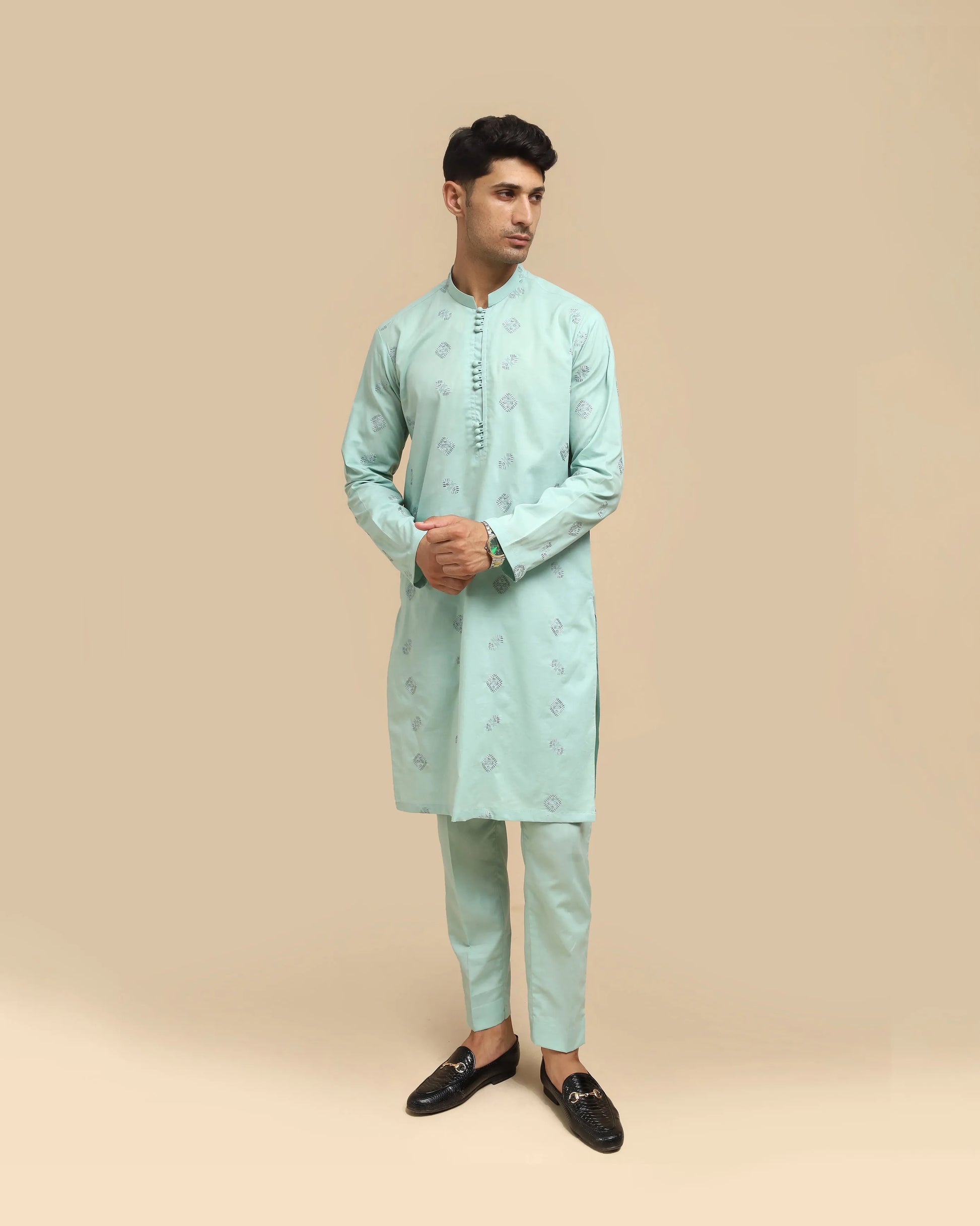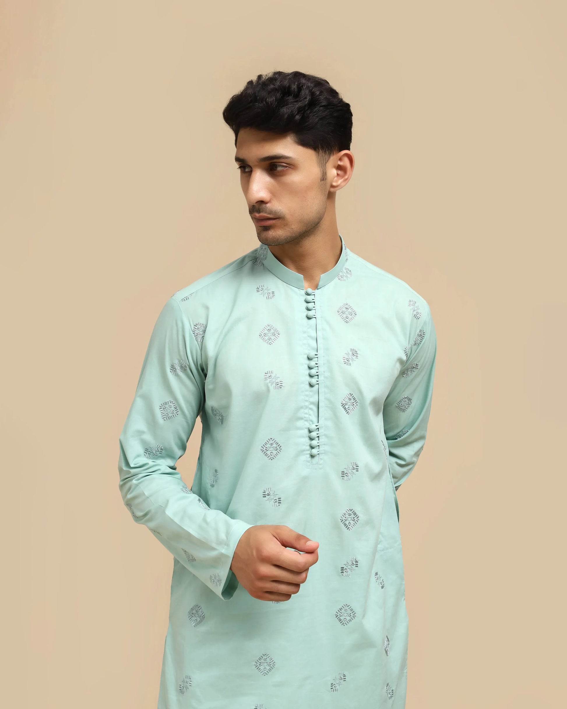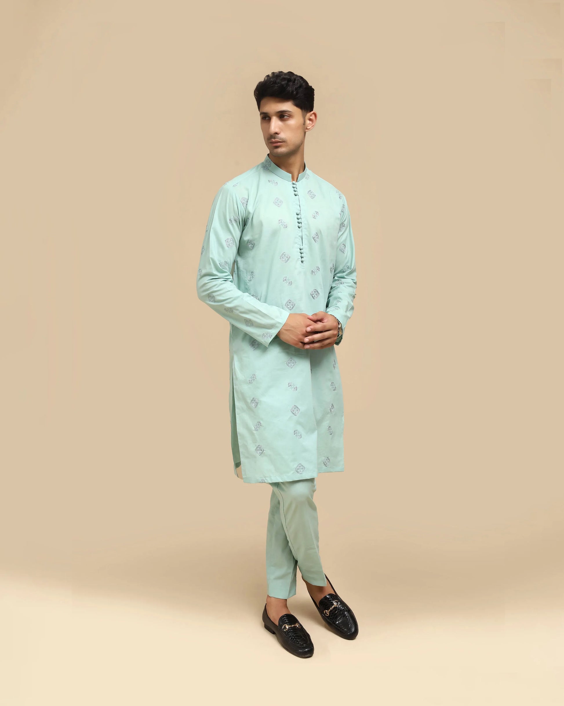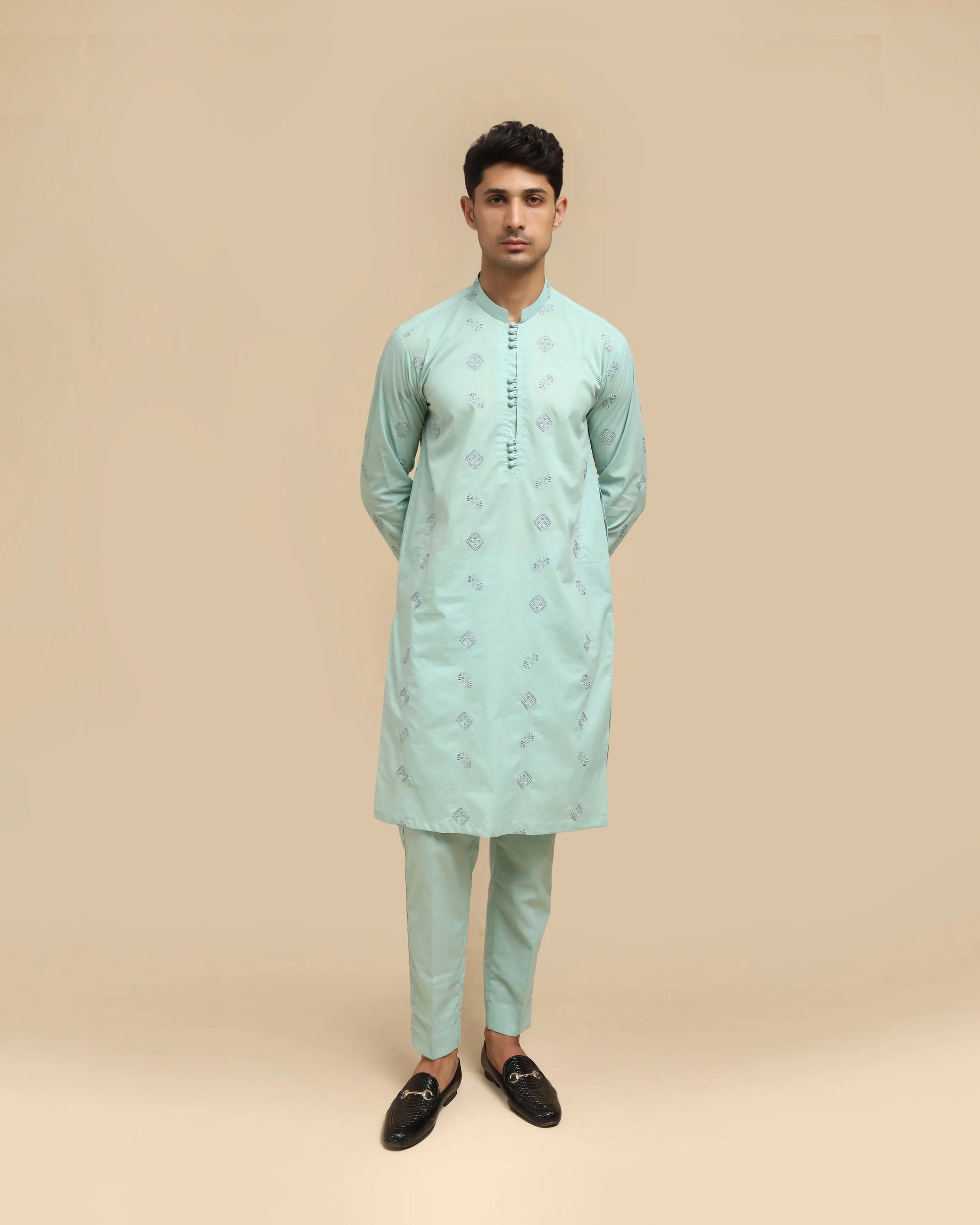 Sea Green Cotton Embroidered Kurta Trouser MED-2222 - Men