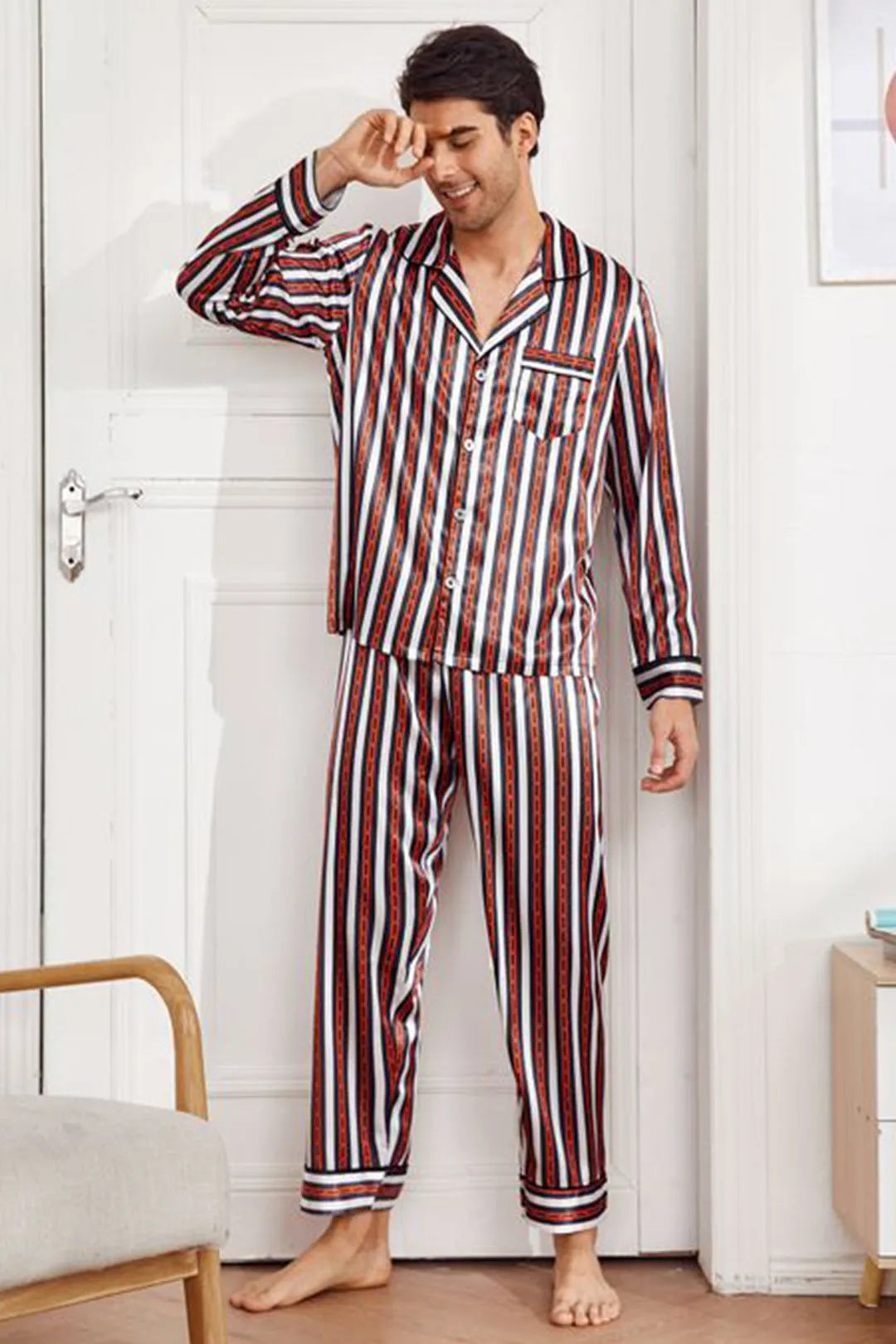 Our Men's Satin Full-Sleeve Pajama Set is nicely tailored with a classic cut. Made of 100% lightweight polyester fabric with a satin weave and silky feel, these men's pajamas feature one front pocket on the chest, a comfortable elastic waistband
