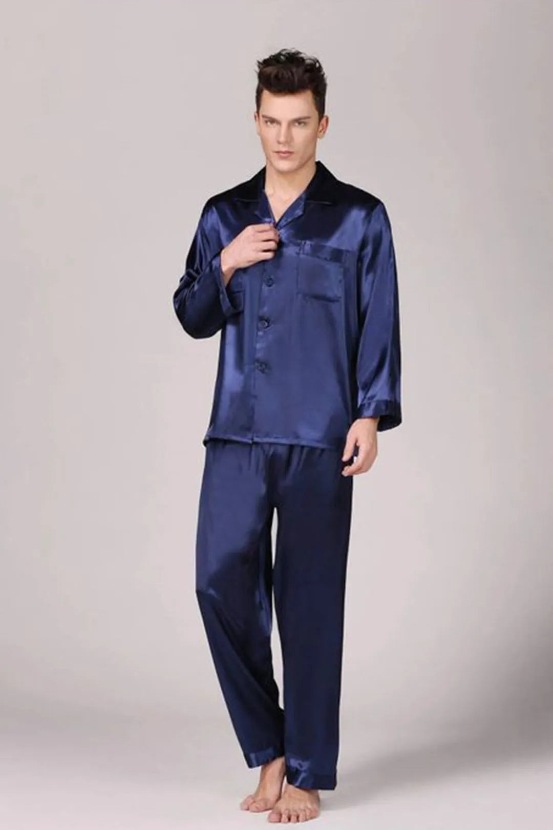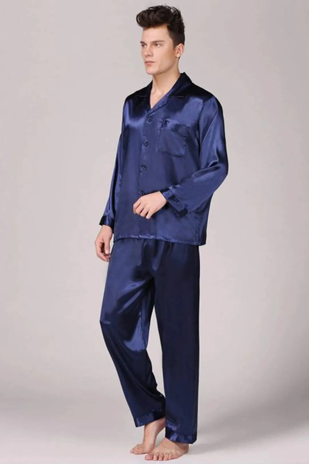 Our Men's Satin Full-Sleeve Pajama Set is nicely tailored with a classic cut. Made of 100% lightweight polyester fabric with a satin weave and silky feel, these men's pajamas feature one front pocket on the chest, a comfortable elastic waistband