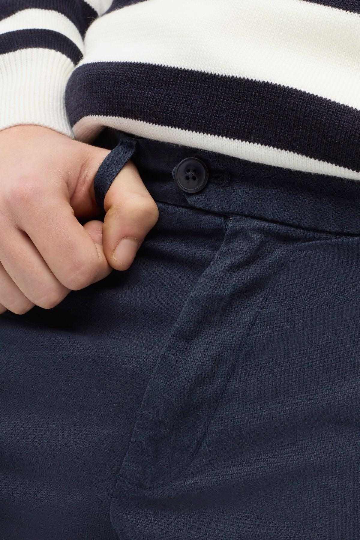 98% Cotton 2% Elastane. Regular Waistband With Centre Front Button And Loops. Front Slash Pockets. Rear Welt Pockets.