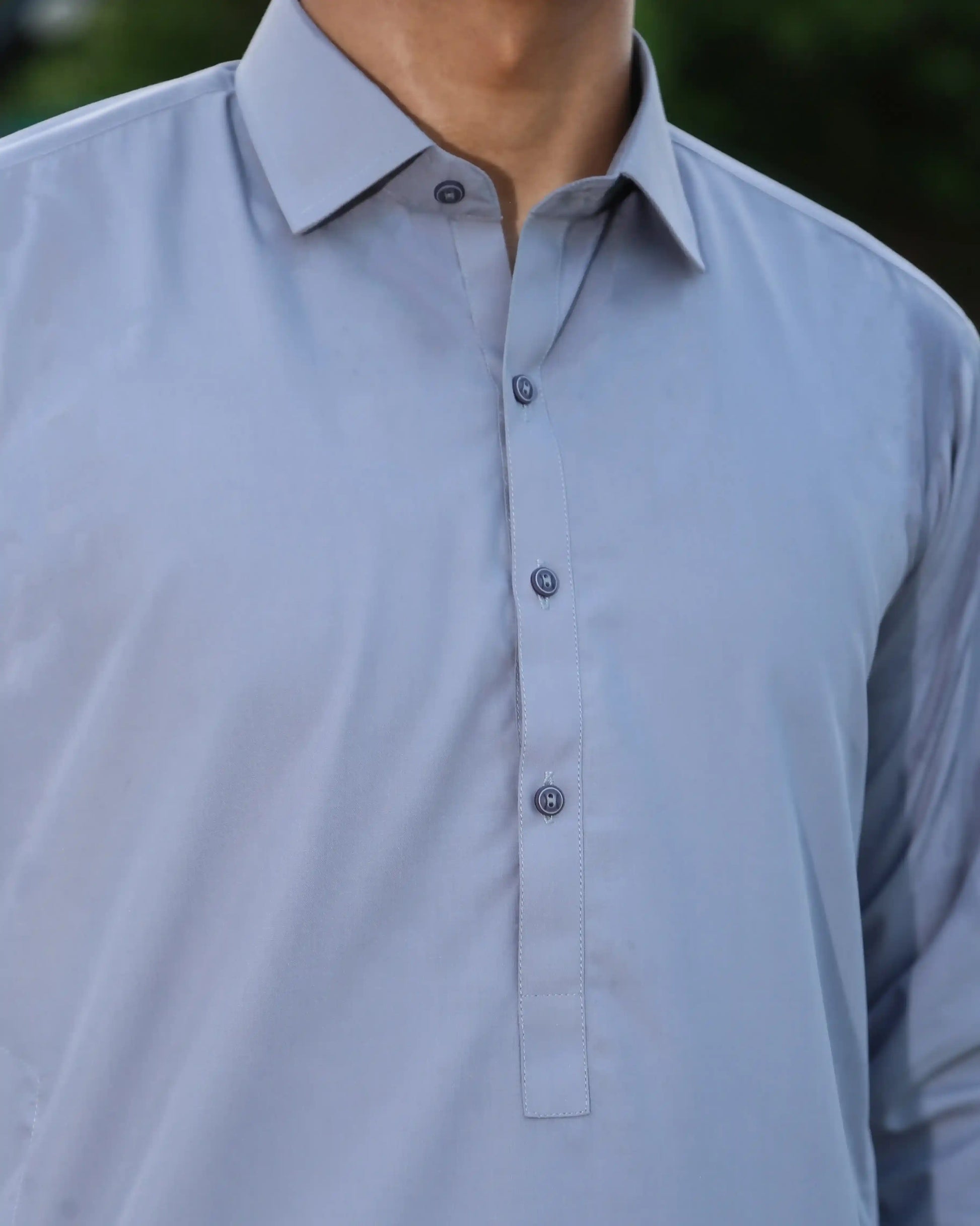 Sliver Gray French Collar Shalwar Kameez - Stitched