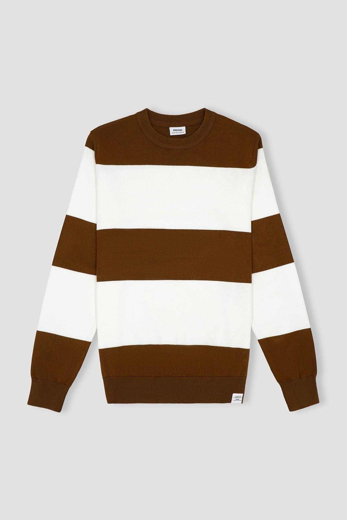 75% Viscose 25% Polyester. Comfy Striped Sweater With Crew Neckline And Long Sleeves.