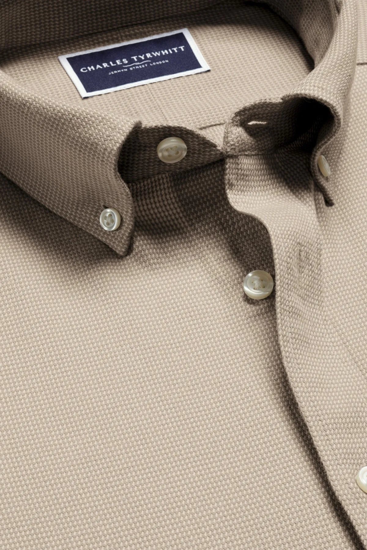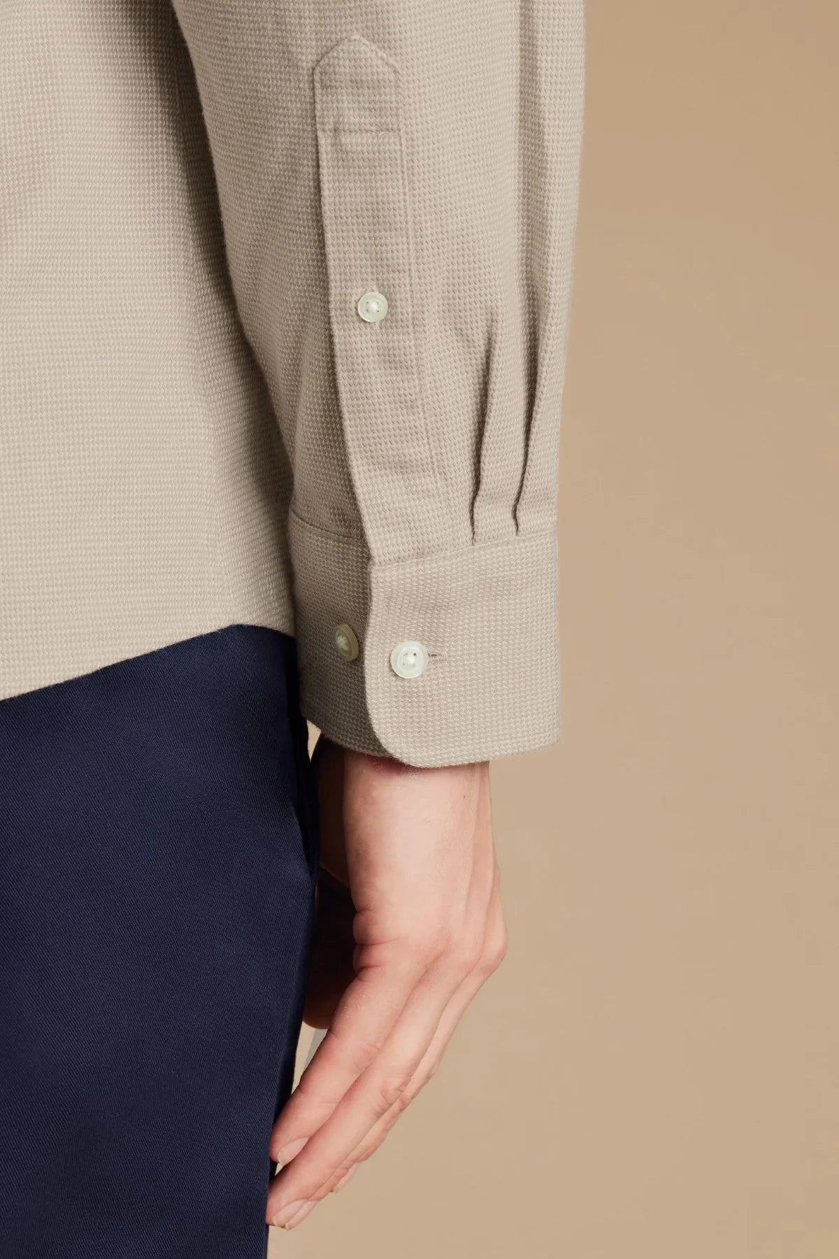 Taupe Puppytooth Dobby Flannel Slim Fit Shirt