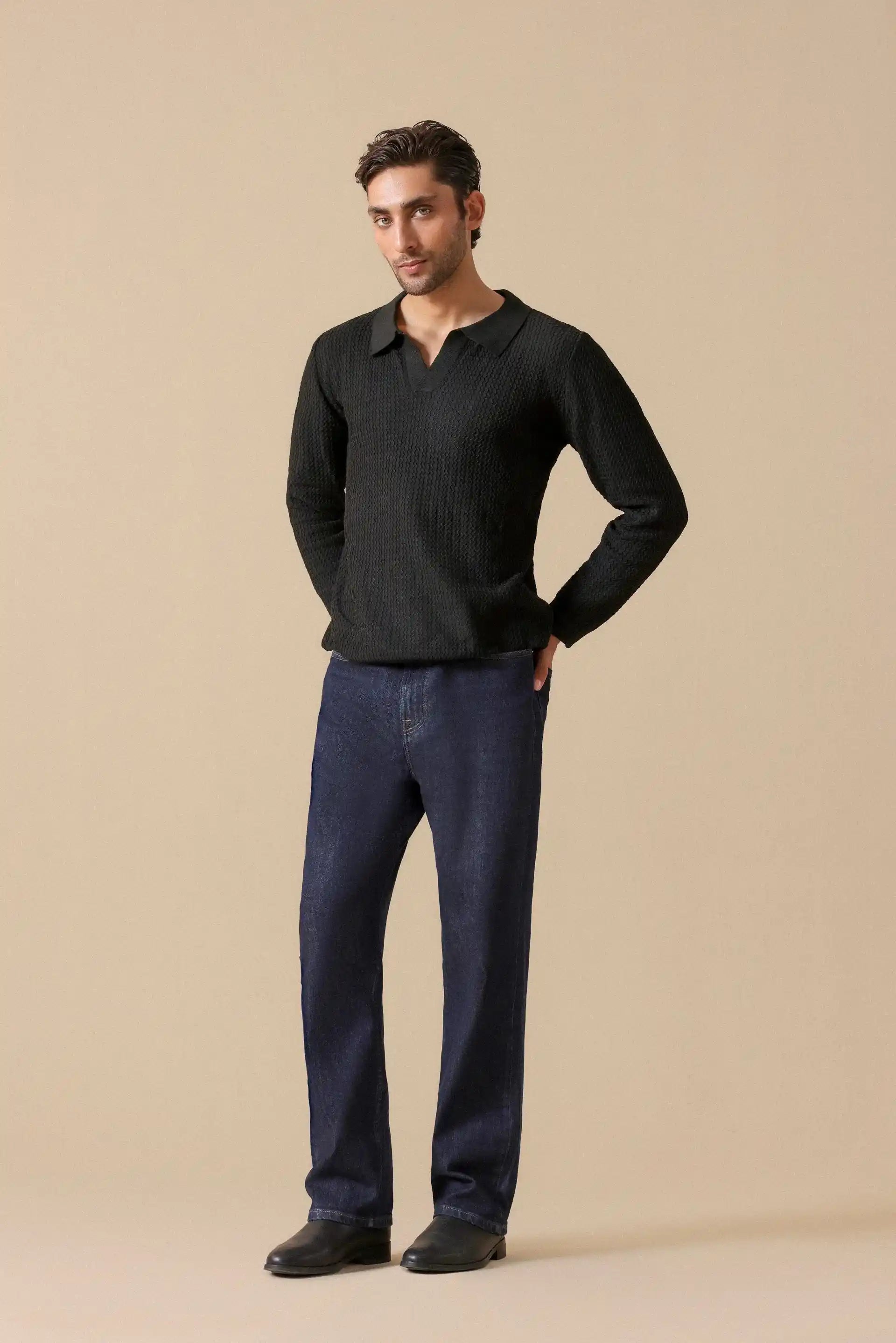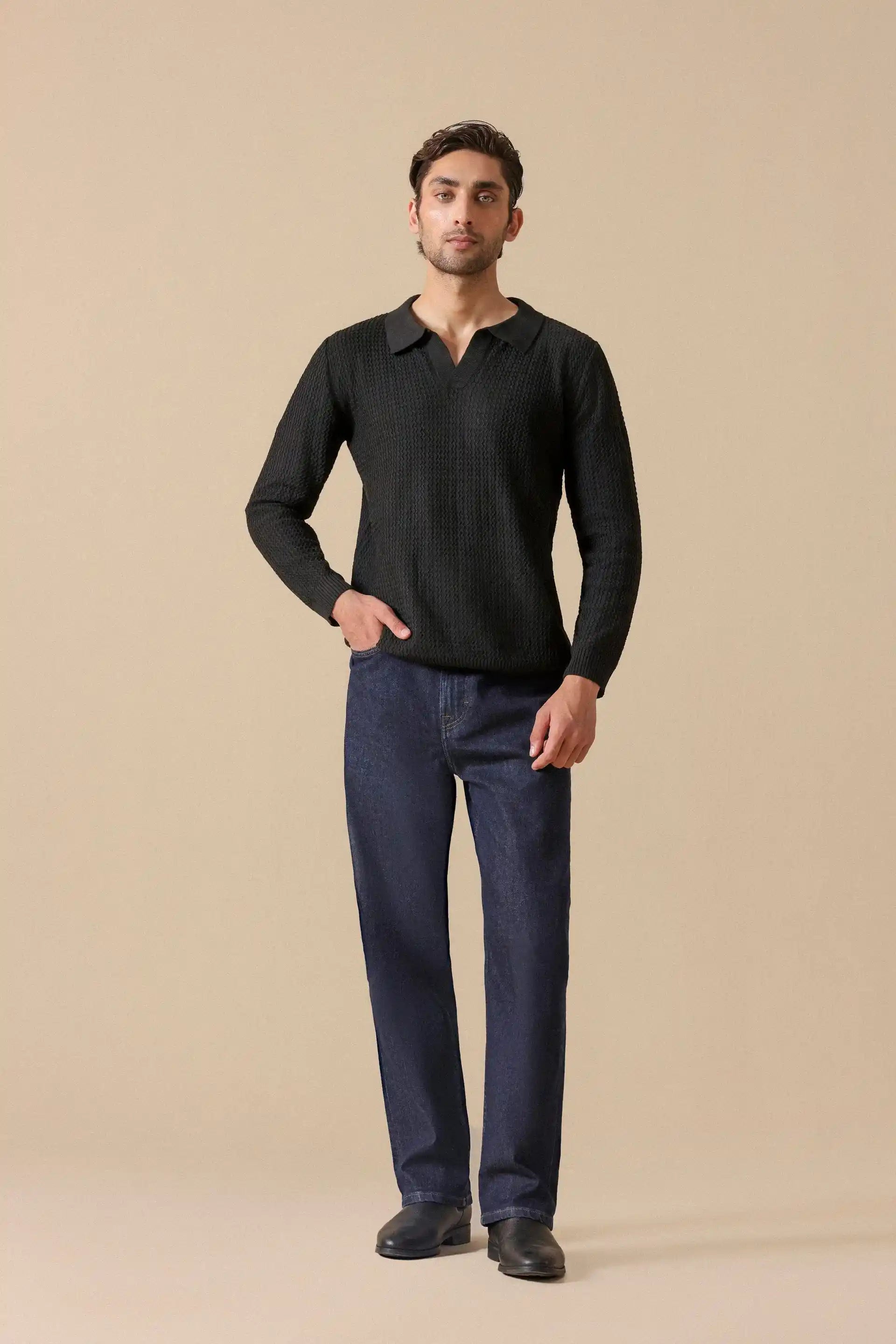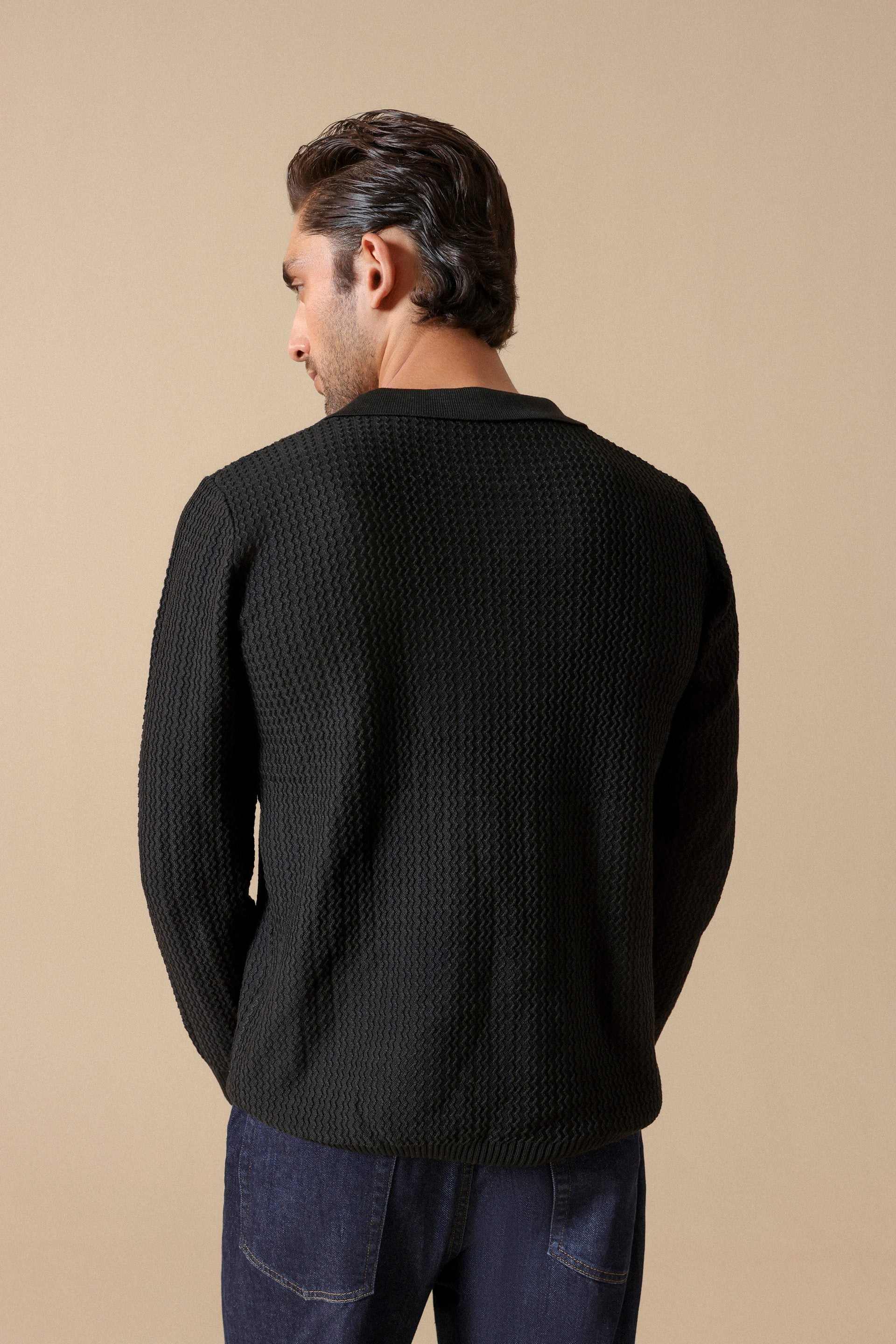 Indulge in luxury with our Textured Polo Sweater for men. Crafted with intricate details, this sweater elevates your style and comfort. Perfect for any occasion, its textured design adds a touch of sophistication to your outfit. Elevate your wardrobe with this exquisite piece.