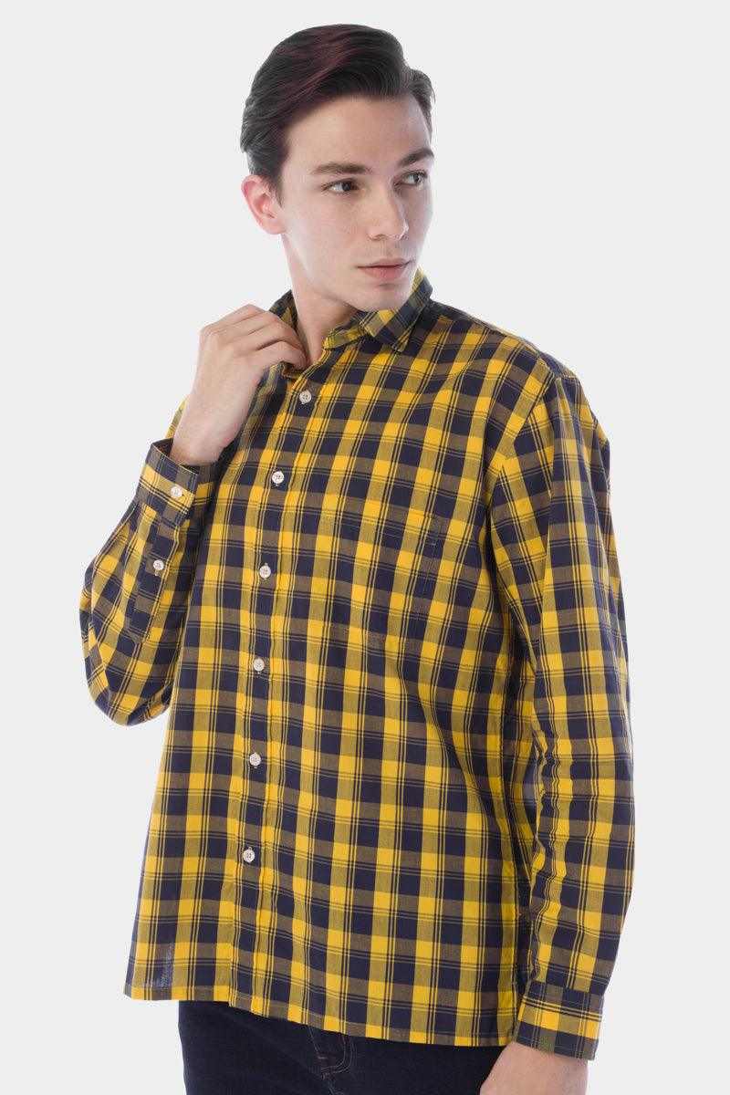 100% Cotton Buffalo Checkered Casual Button Down Closure Shirt With Regular Collar. Contrast Buttons. Full Sleeves With Cuff. Back Yoke