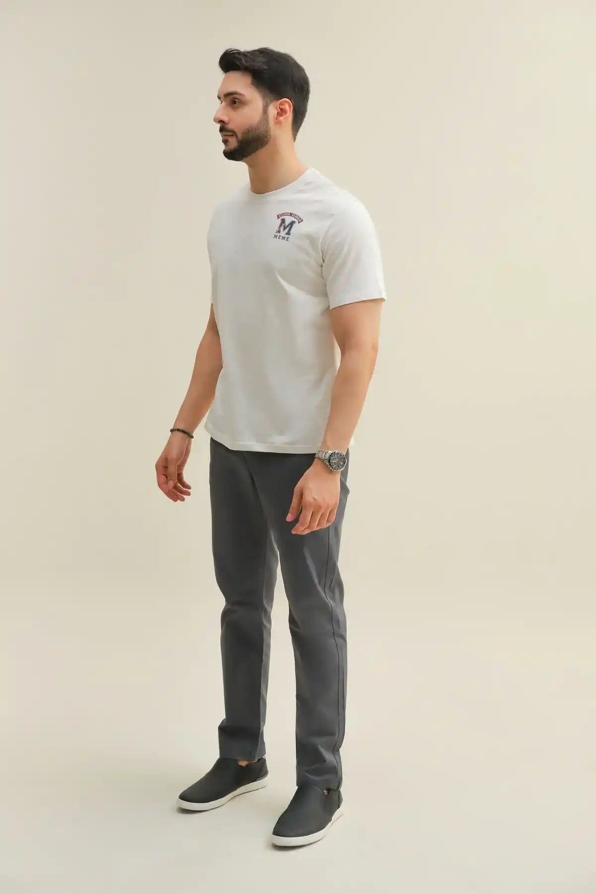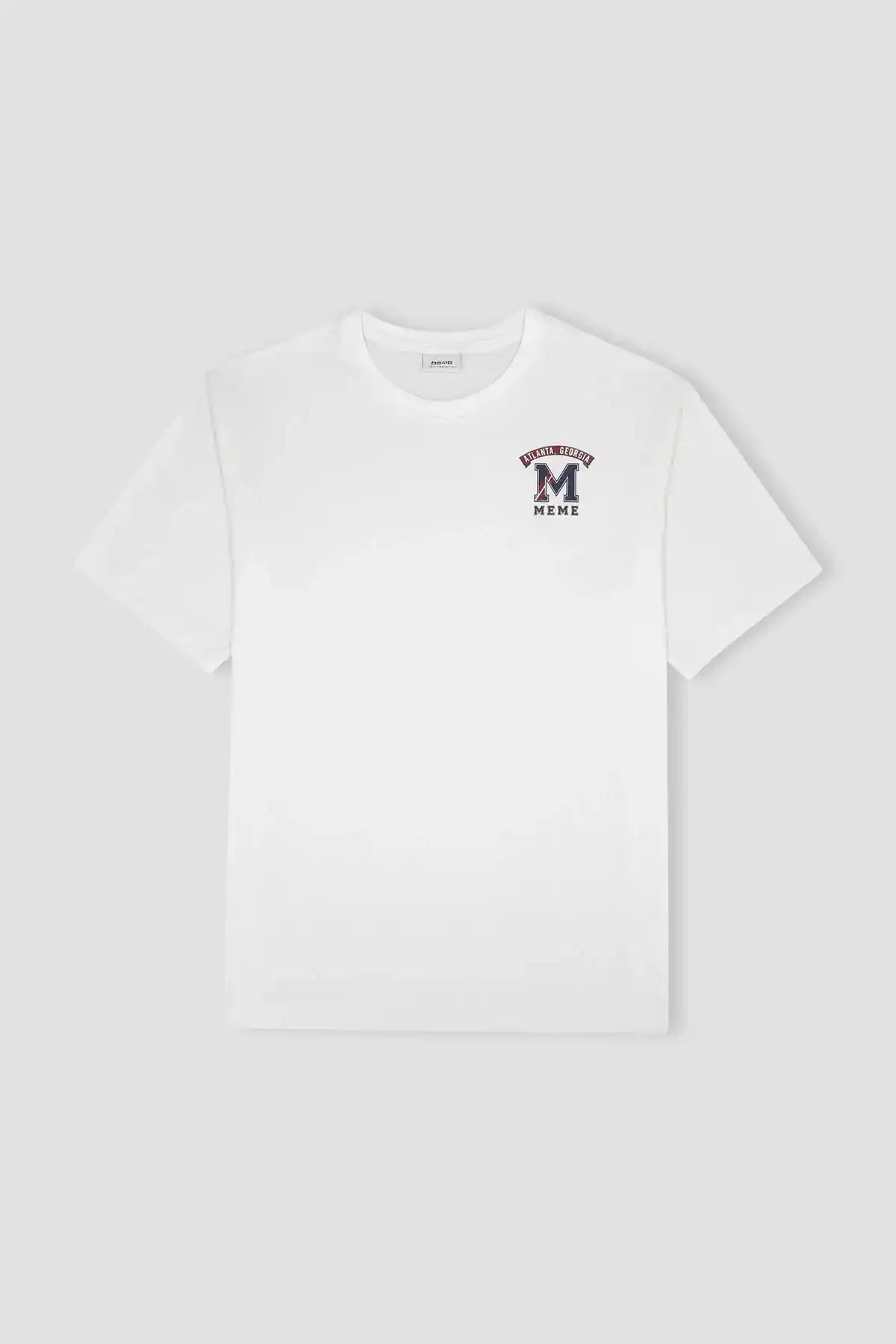 100% Cotton. Comfortable Crew Neck Tee With Short Sleeves. Featuring Front Typography.