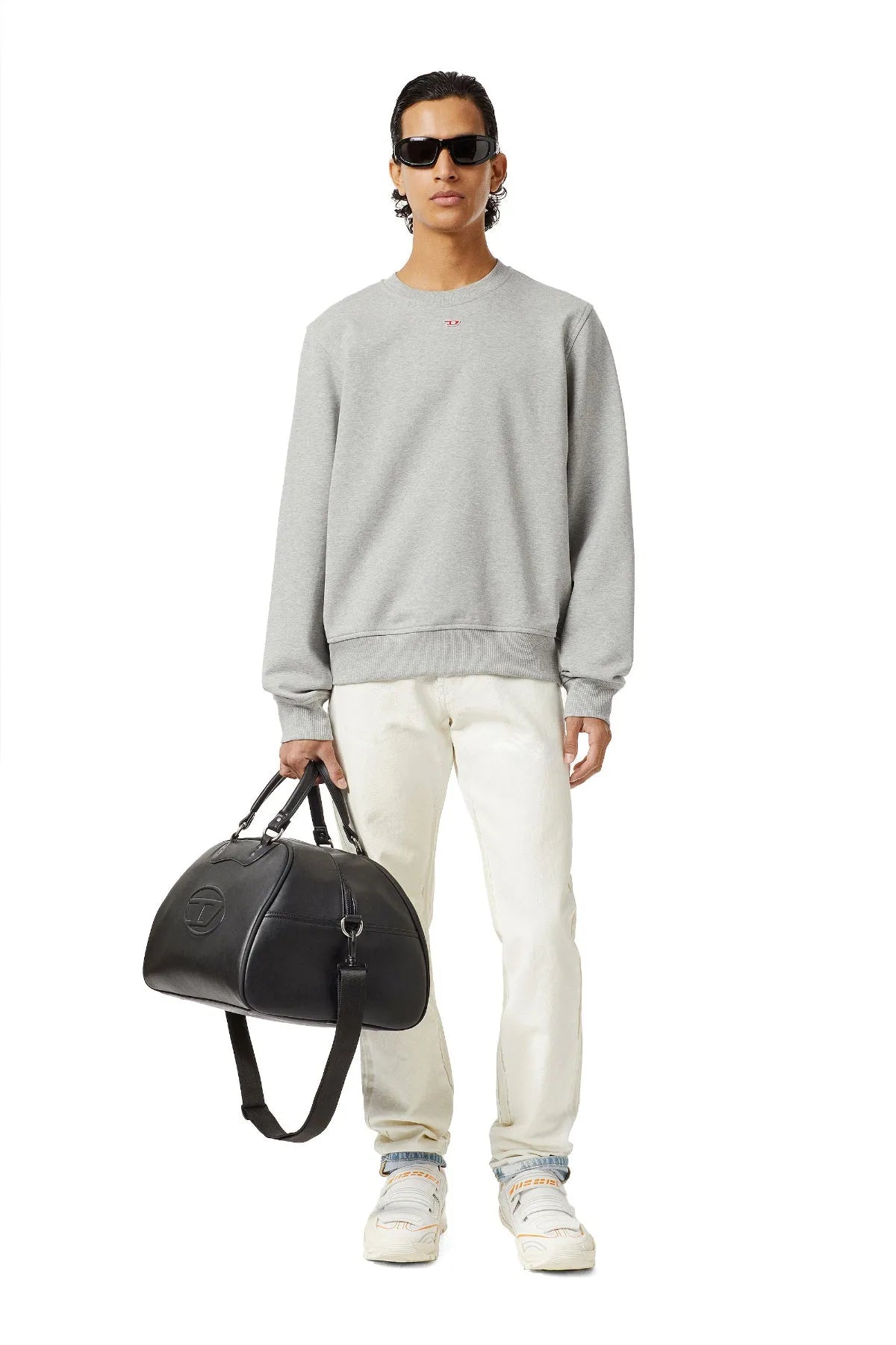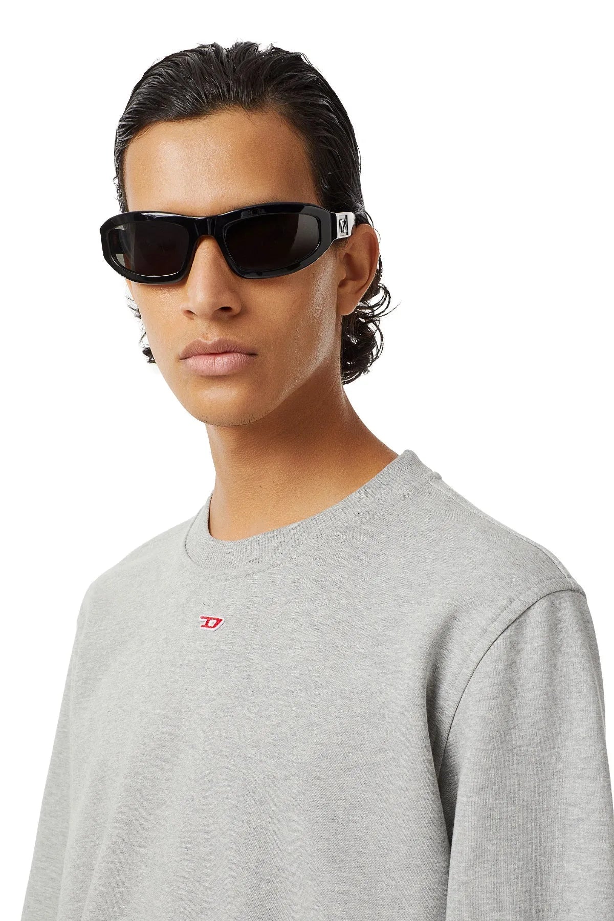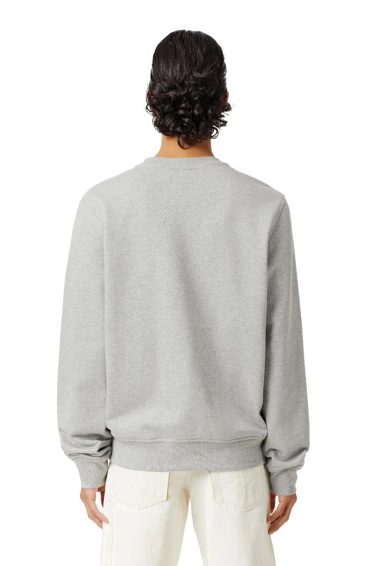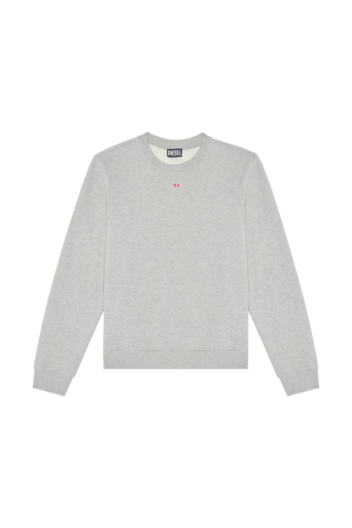 Crew-neck sweatshirt with a clean design, crafted from loopback cotton jersey. The style is cut for a regular fit and features a small red 'D' patch centred high on the chest.