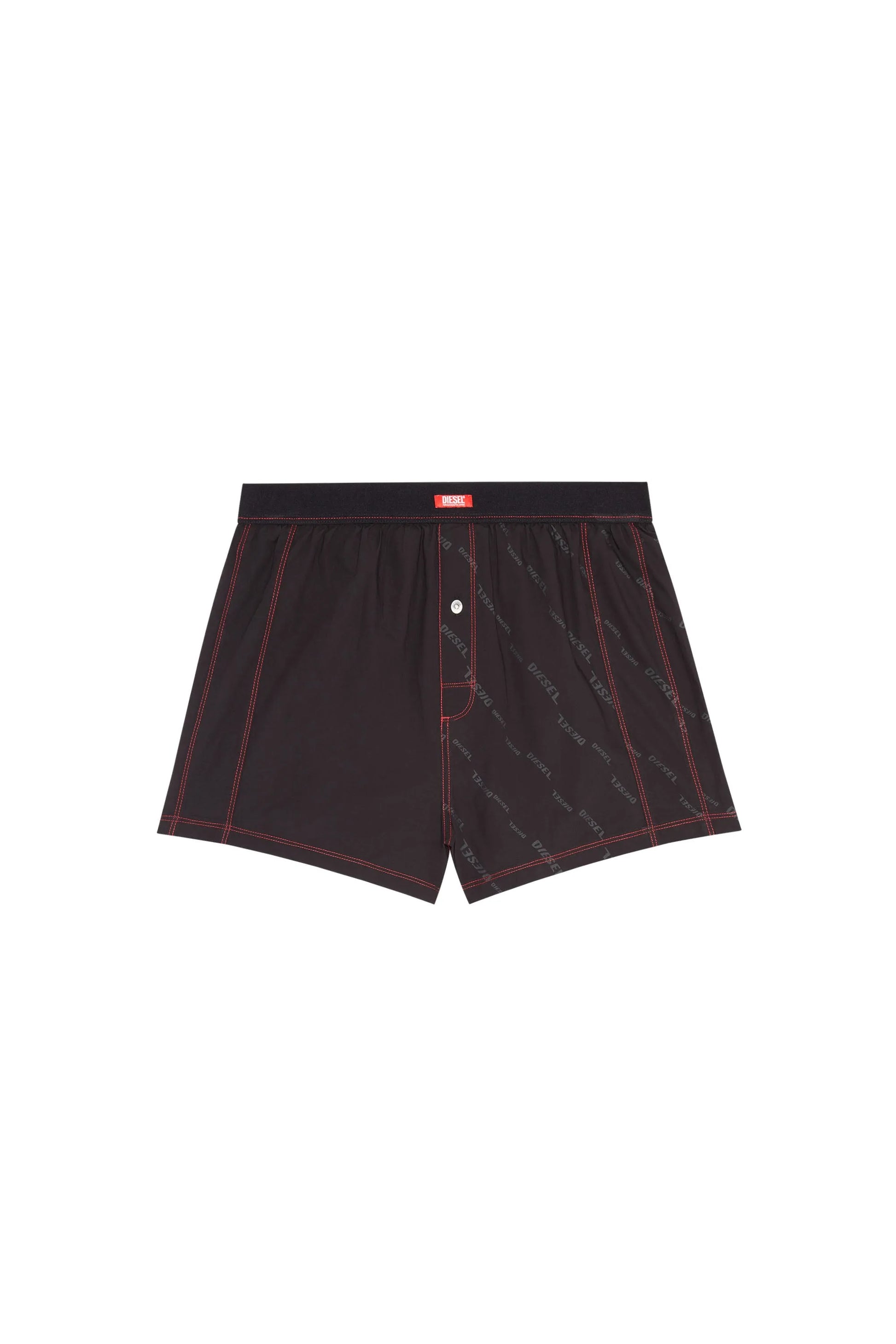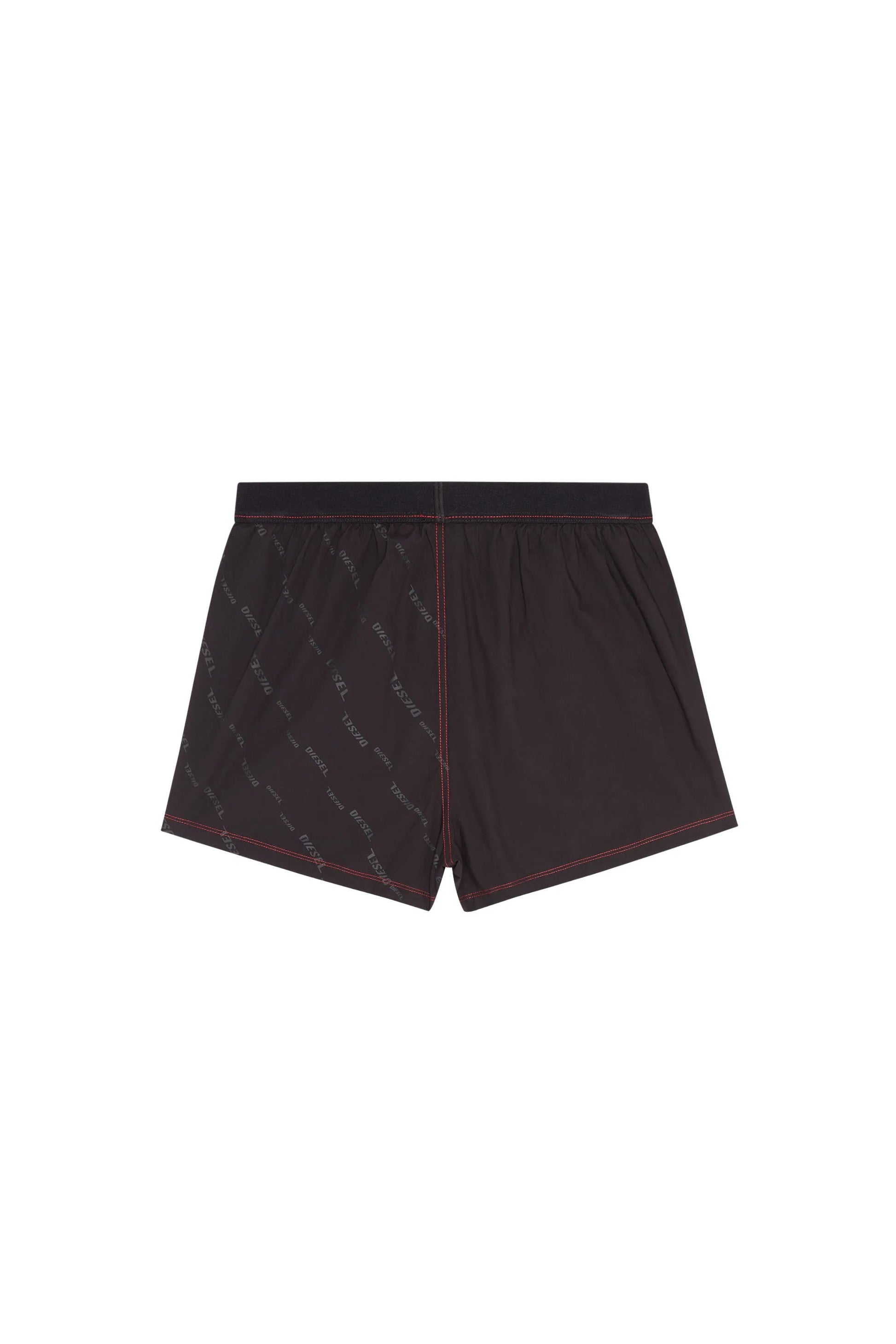Unisex cotton boxers with printed Diesel lettering on the left side in different sizes. Presented in a range of skin tones with contrast red stitching and trims, each pair is finished with a jacquard logo tag spun from recycled yarn.
