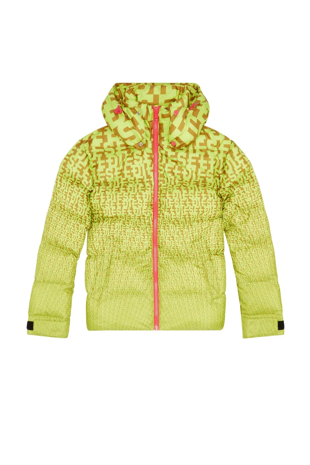 Puffer jacket in padded quilted shell, printed allover with a shrinking monogram pattern. Adjustable at the cuffs and hem, the style has a regular fit and detachable hood. The sleeve is detailed with the 'oval D' patch.