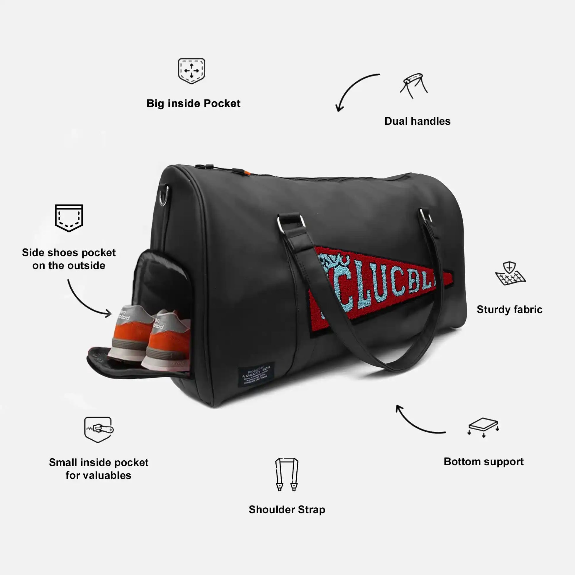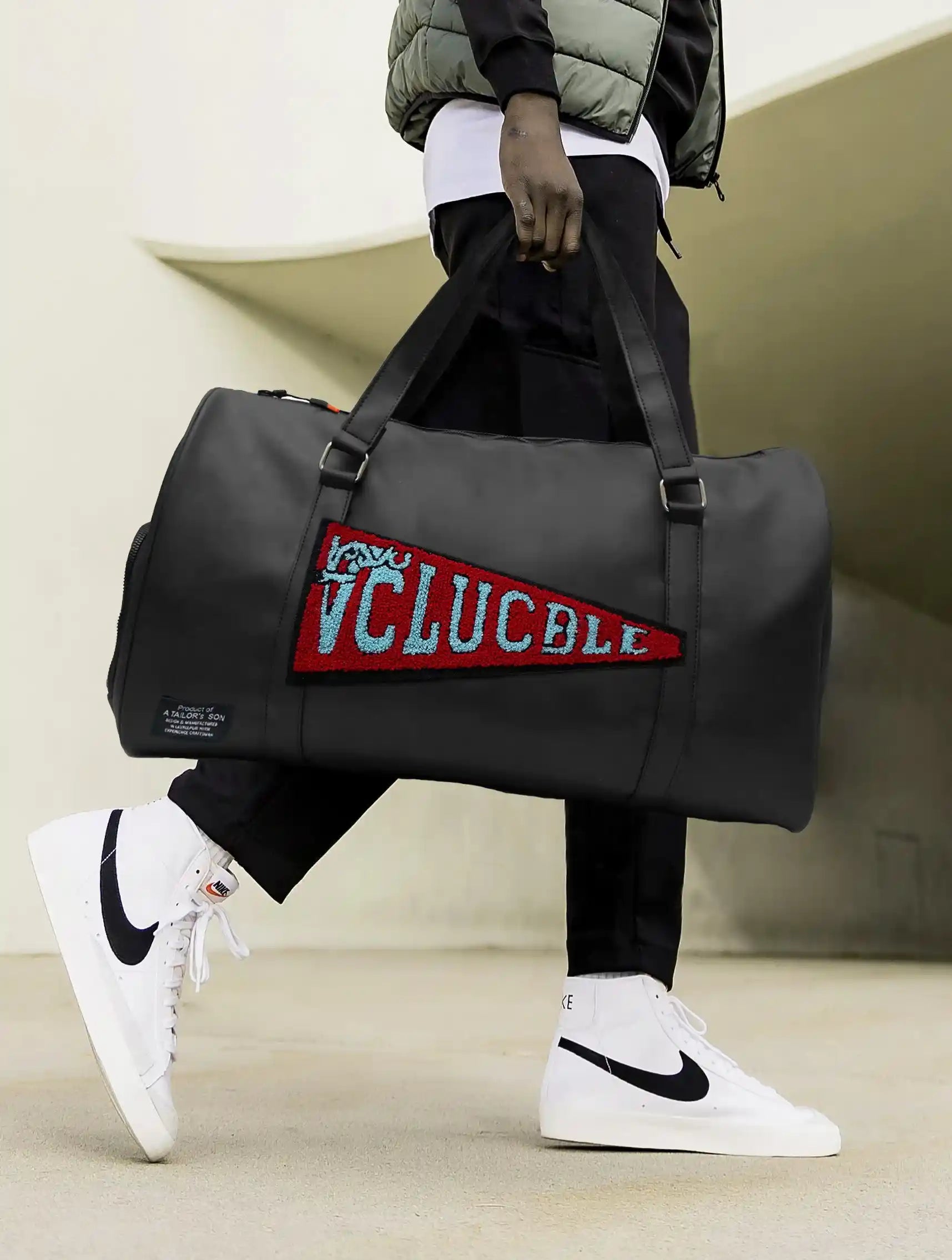 The House's newest essential, the A.T.S VCLUCBL black Duffle bag, is a practical and elegant design. Crafted in black Texture synthetic leather inspired by the House's archives, A side zipped compartment with 2 zips will hold all the essentials. The folding top handles and adjustable, removable shoulder strap allow the bag to be carried by hand, worn over the shoulder or crossbody.
