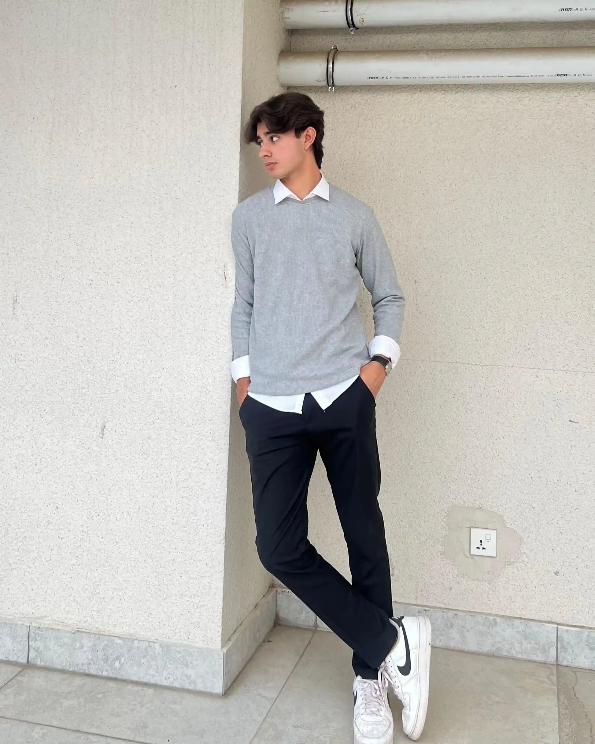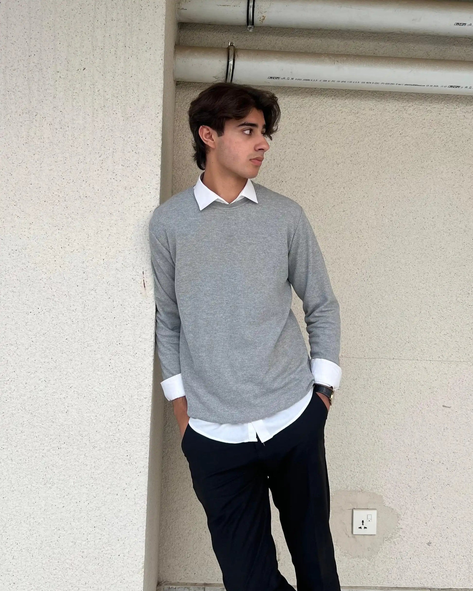 Waffle Grey Sweat Shirt - Men