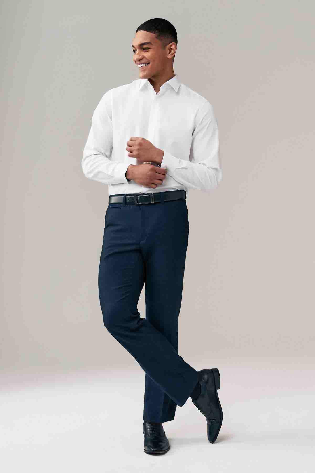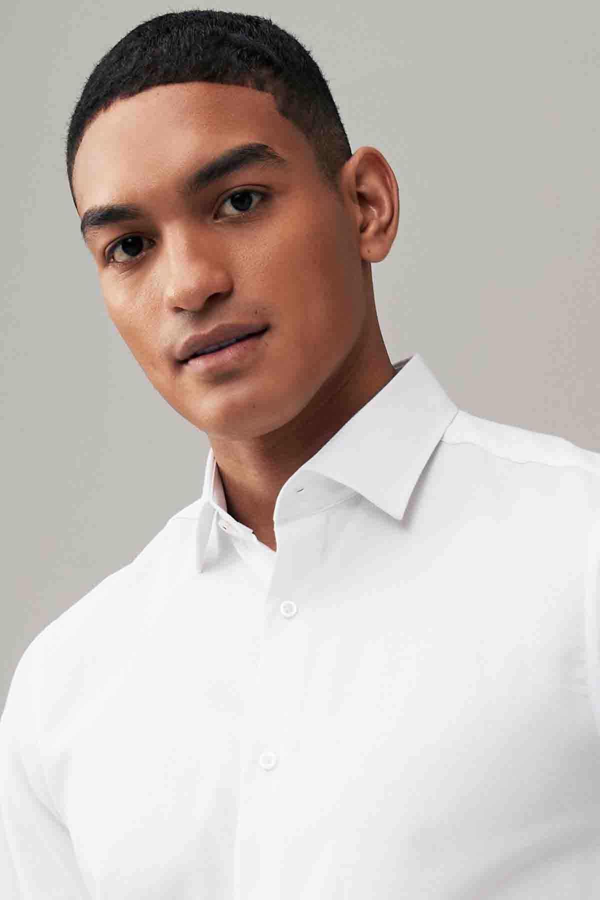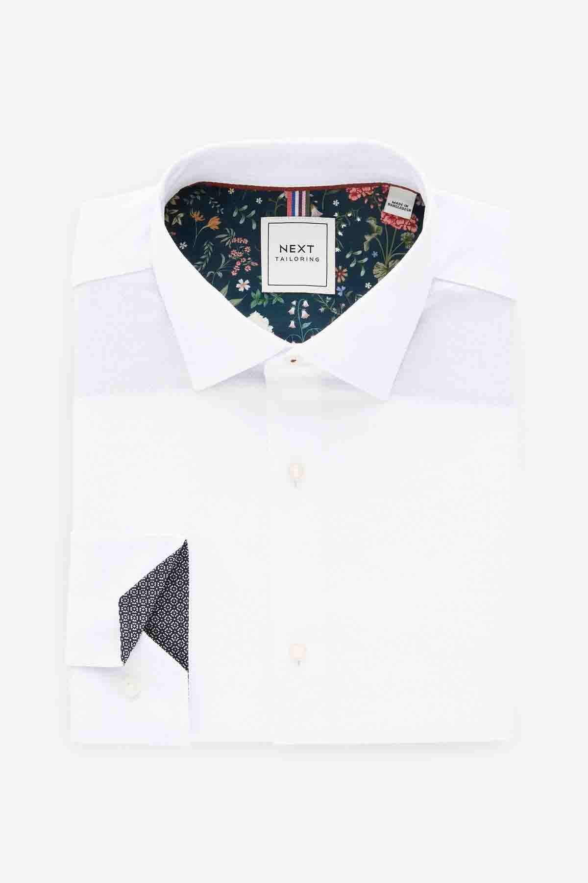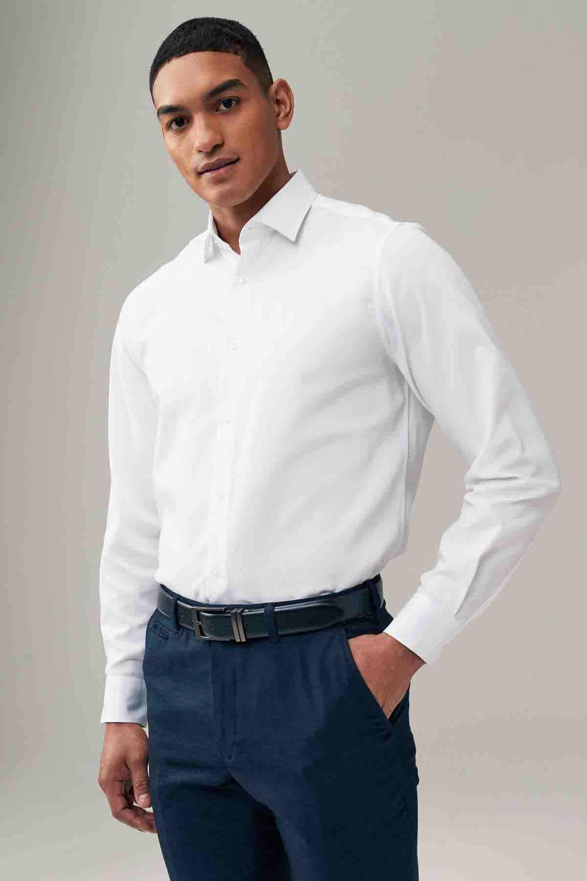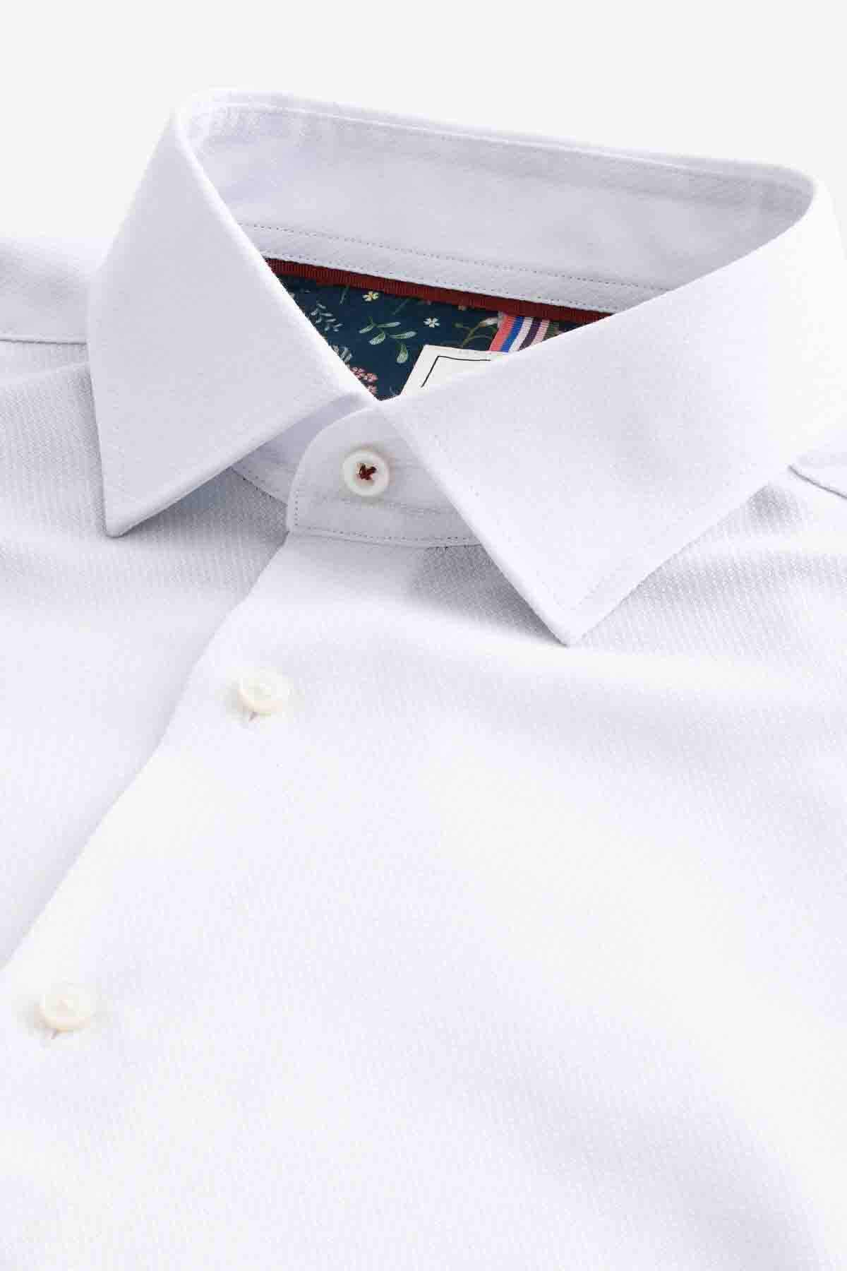 White Regular Fit Trimmed Easy Care Single Cuff Oxford Shirt