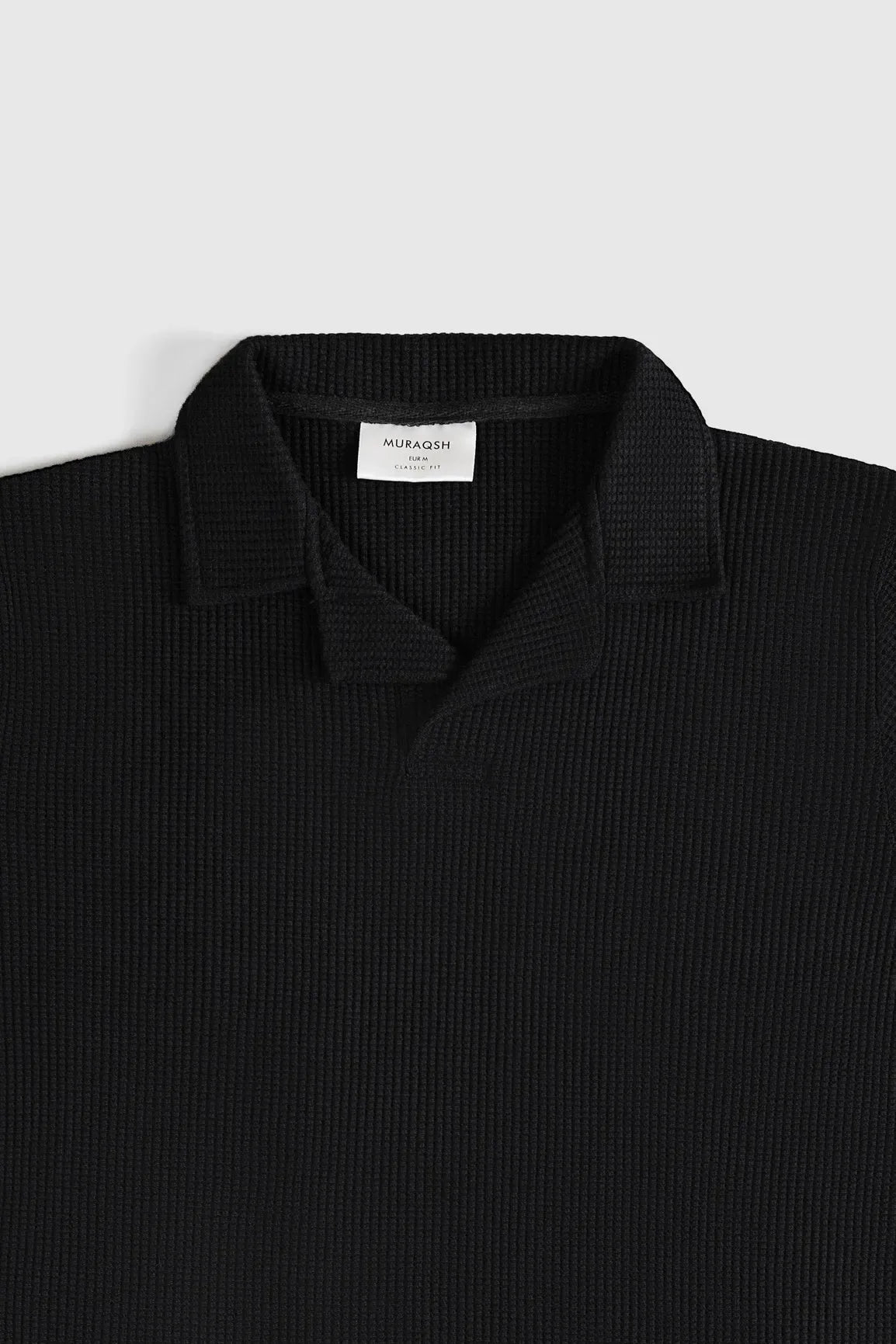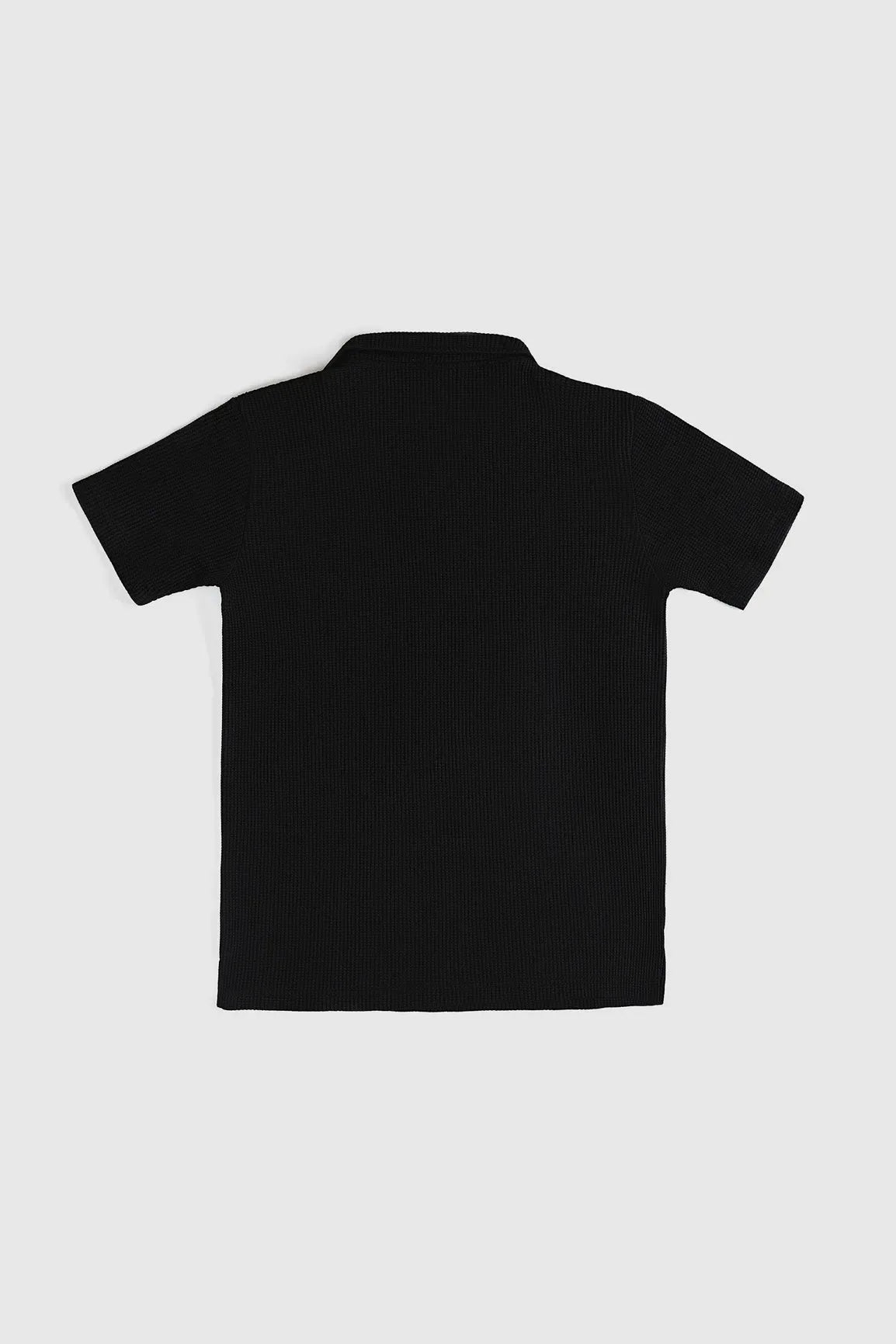 Stay Cool In Style With This Black Drop Needle Revere Polo For Men. Designed For Summers With A Breathable Texture And Relaxed Fit. Perfect For Casual And Smart Looks.